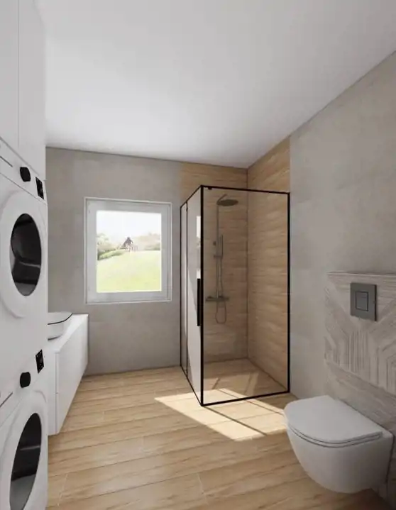 Mieszanie zostanie przekazane z wykończoną łazienką, położonymi panelami i zamontowanymi drzwiami pokojowymi.