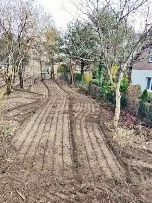 Działka prostokątna o wymiarach ok. 28 m (front) x ok. 78 m, częściowo ogrodzona. Dojazd asfaltowy z dwóch stron. Działki niezabudowane, z nasadzeniami (samosiejki) - krzewy, drzewa.