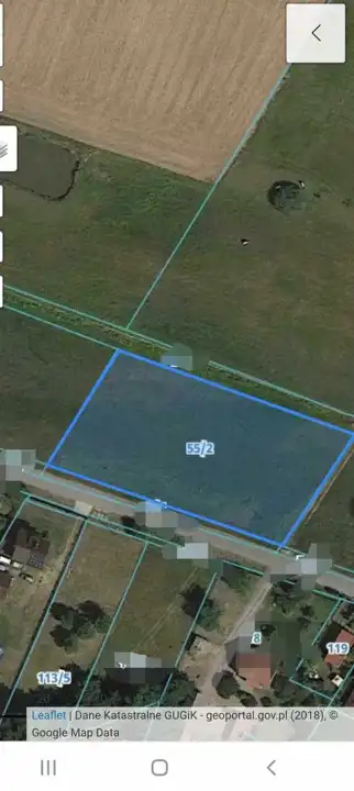 Działka przed podziałem geodezyjnym, numer ewidencyjny 55/2 Popłacin, więc możliwość zakupu jako: