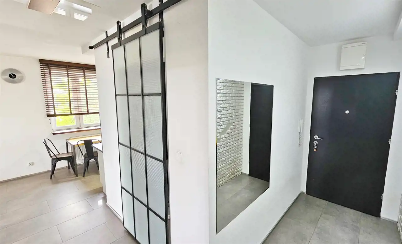 - Hol z zabudowaną szafą – gwarantujący praktyczne rozwiązania do przechowywania.