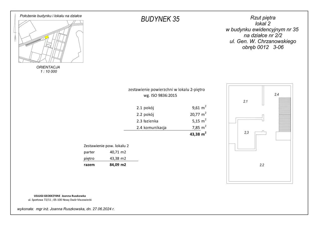 Do wynajęcia apartament o powierzchni 84 m2, dwupoziomowy w budynku dwulokalowym. Stan developerski. Bezczynszowy, w zabytkowym budynku kuźni, z 1900 roku na terenie Twierdzy Modlin. Przebudowa i adaptacja w 2024 roku. Wyodrębniono dwa lokale: 148 m2 i 84 m2.