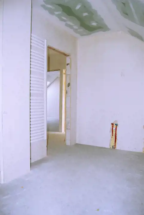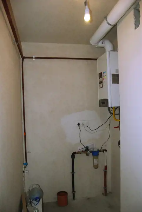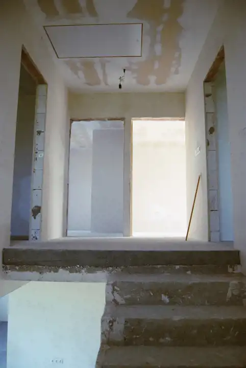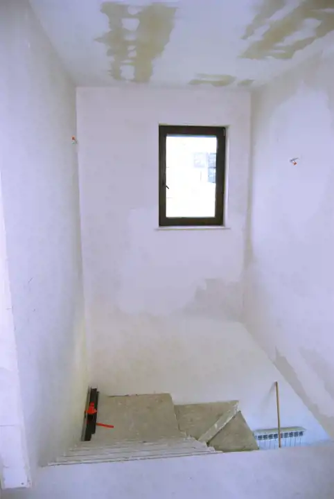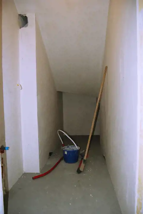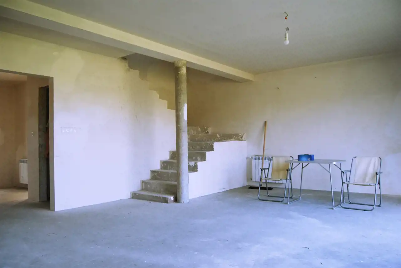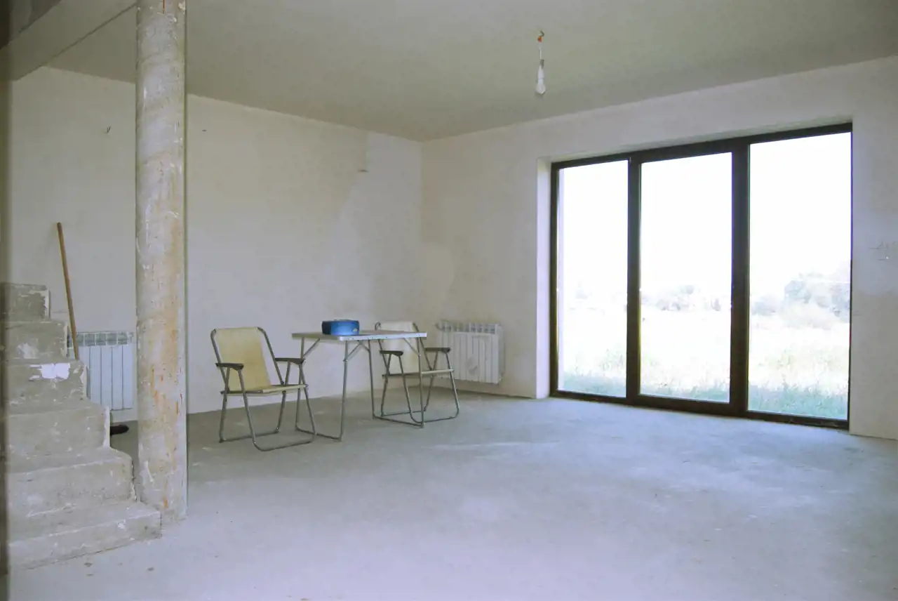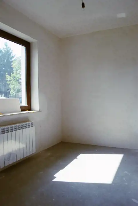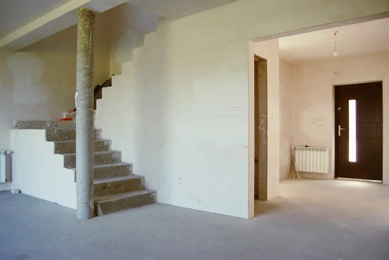 Dom piętrowy, bliźniaczy w stanie deweloperskim zamkniętym - wykonane wszystkie instalacje, tynki oraz posadzki, zamontowany kocioł gazowy, okna, drzwi i brama garażowa.
