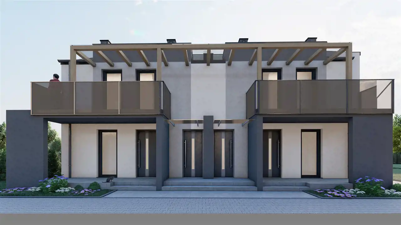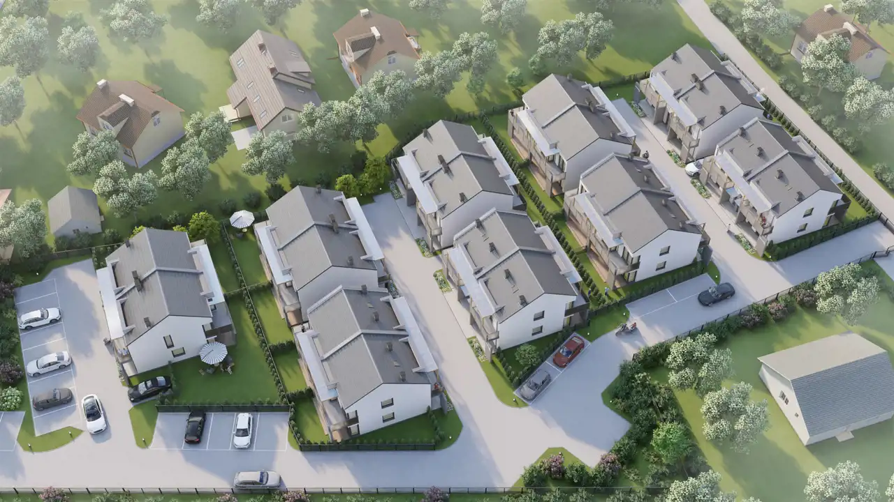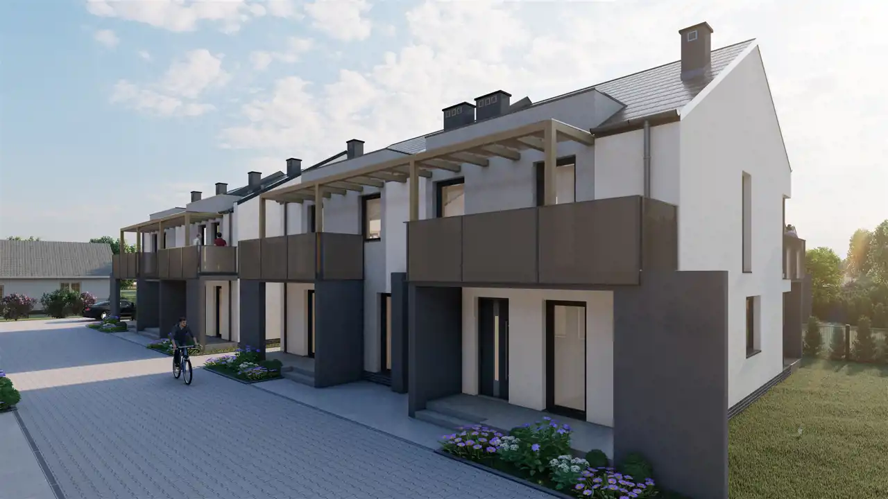 10 lokali mieszkalnych o powierzchni 110,42m2 - lokale dwupoziomowe w zabudowie bliźniaczej.