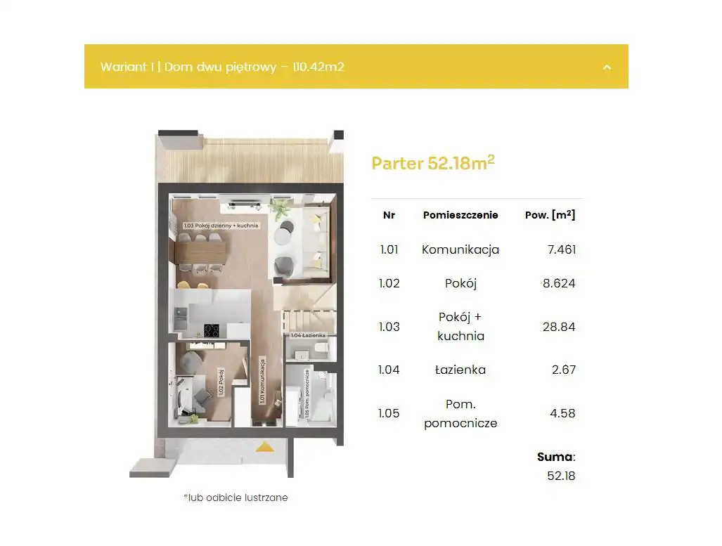 8 lokali mieszkalnych o powierzchni 52,01m2 - dostępne na parterze.