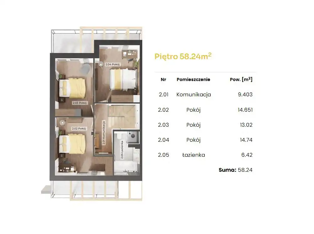 8 lokali mieszkalnych o powierzchni 58,32m2 - dostępne na pierwszym piętrze.