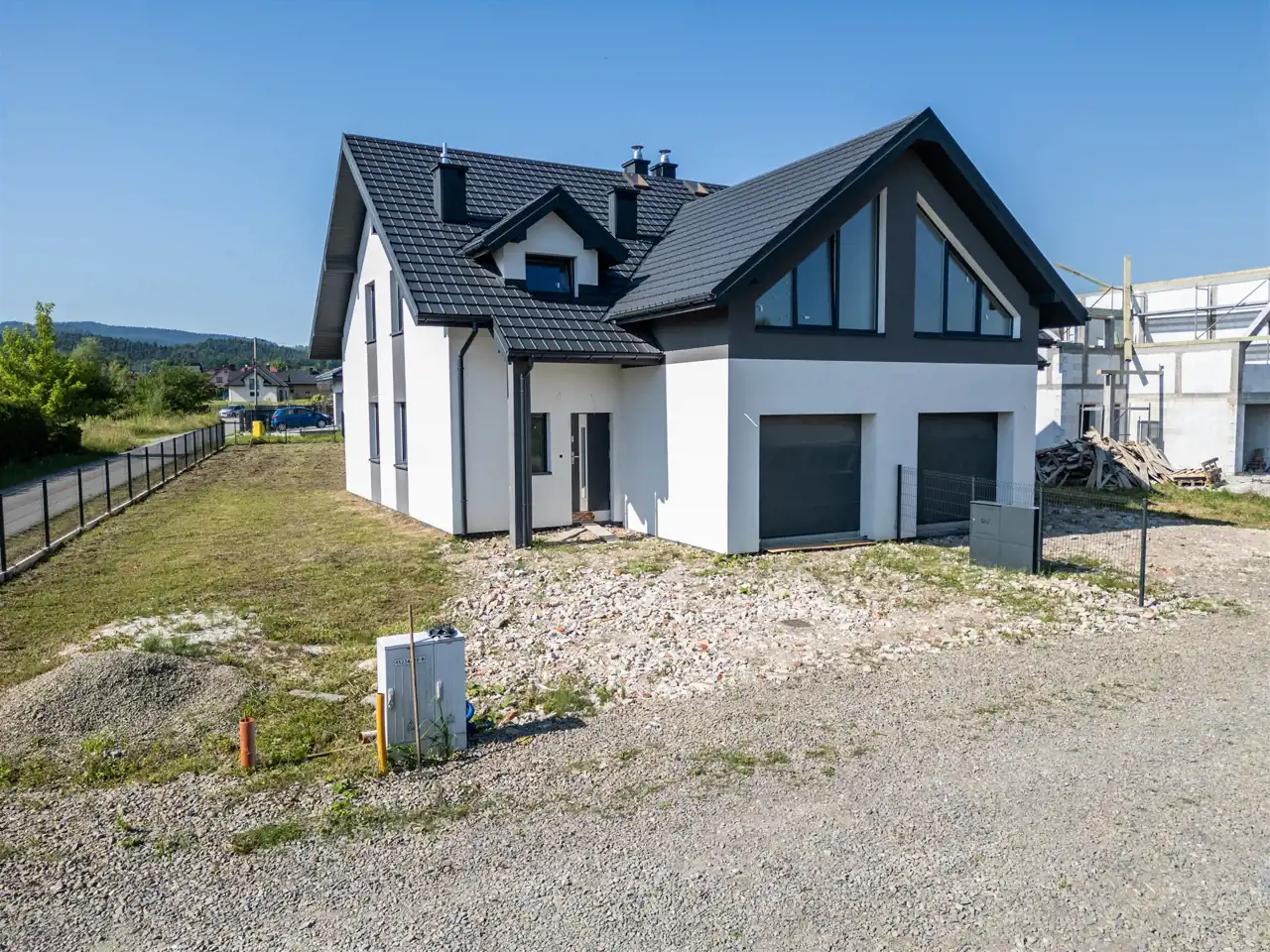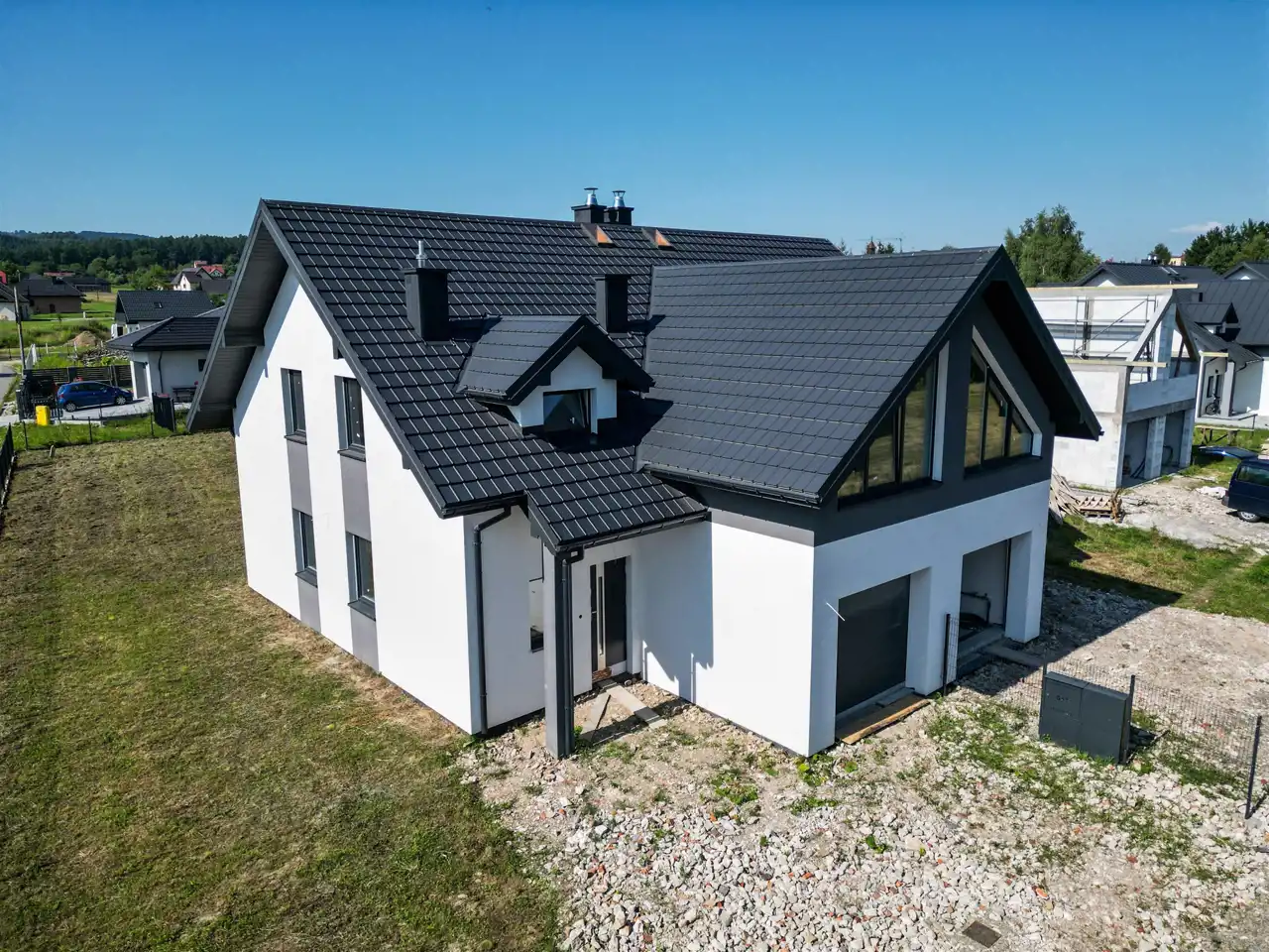Drzwi wejściowe oraz automatyczna brama garażowa również w kolorze antracyt.
