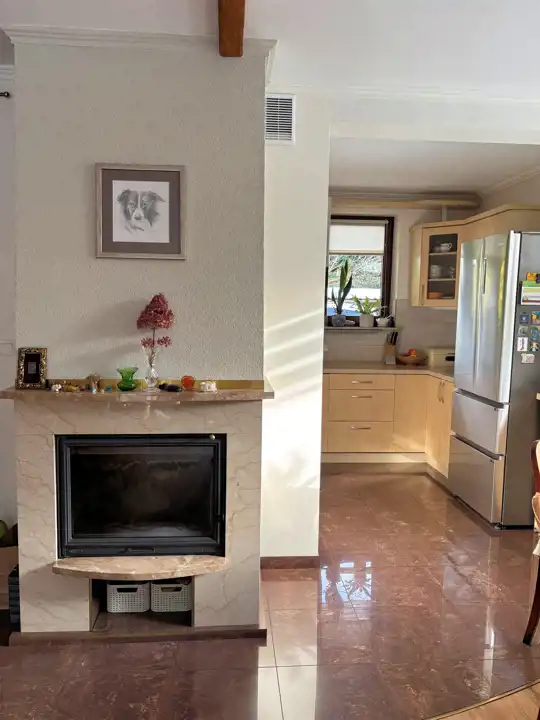 - Przestronny salon z otwartą kuchnią i certyfikowanym kominkiem