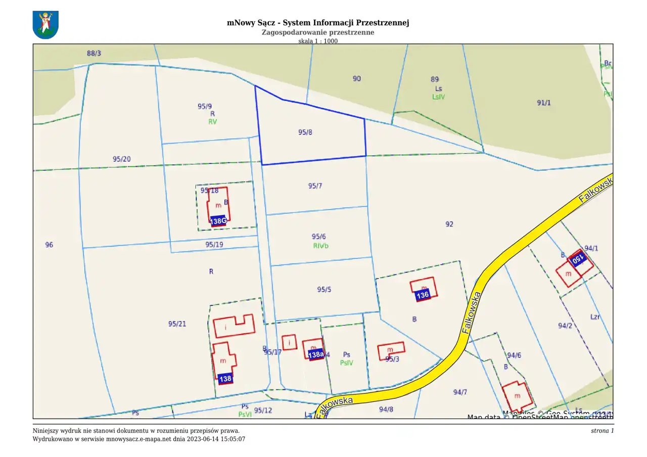 Do sprzedania działka rolna z możliwością zabudowy o powierzchni 1249 m2 Nowy sącz ul.Falkowska.