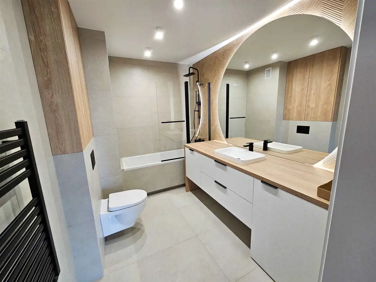 Mieszkanie zaprojektowane w nowoczesnym klimacie oraz jasnej kolorystce, częściowo wyposażone w zabudowę kuchenną, armaturę łazienkową, sprzęt AGD (lodówka, piekarnik, indukcja, okap, zmywarka, lodówka) .