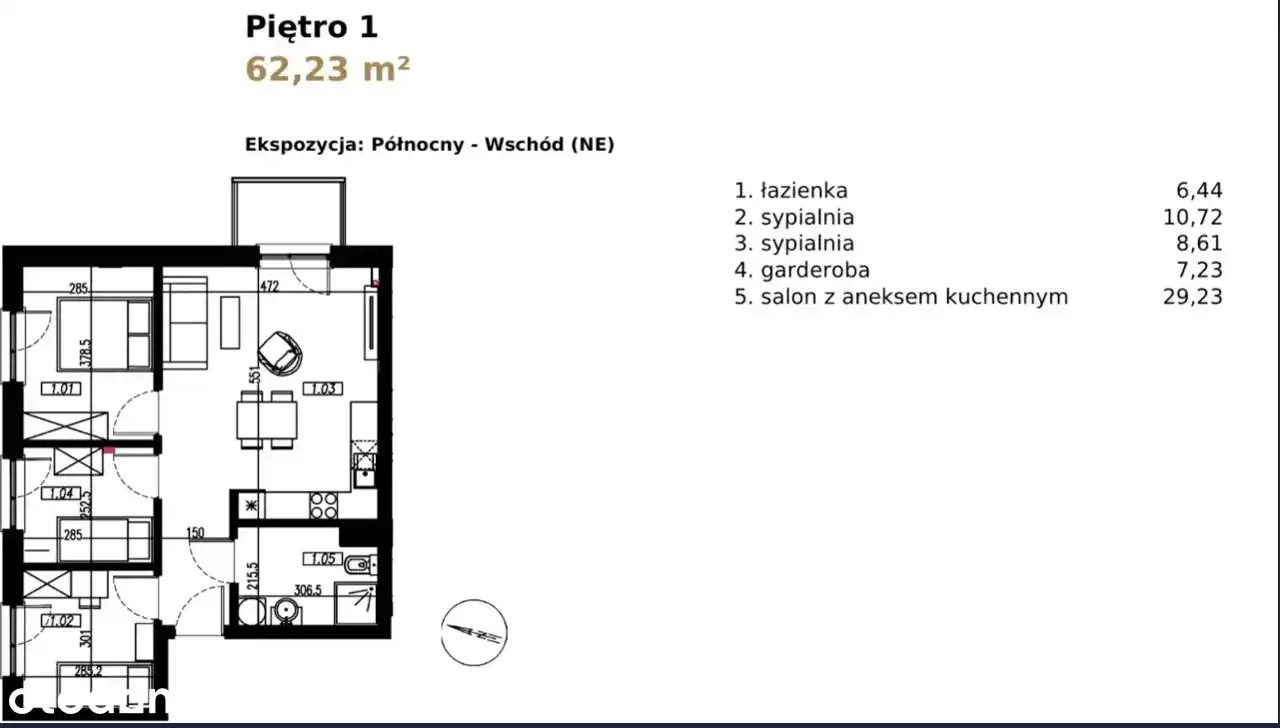 - Charakterystyka mieszkania 62.2 m2, 3 pokoje