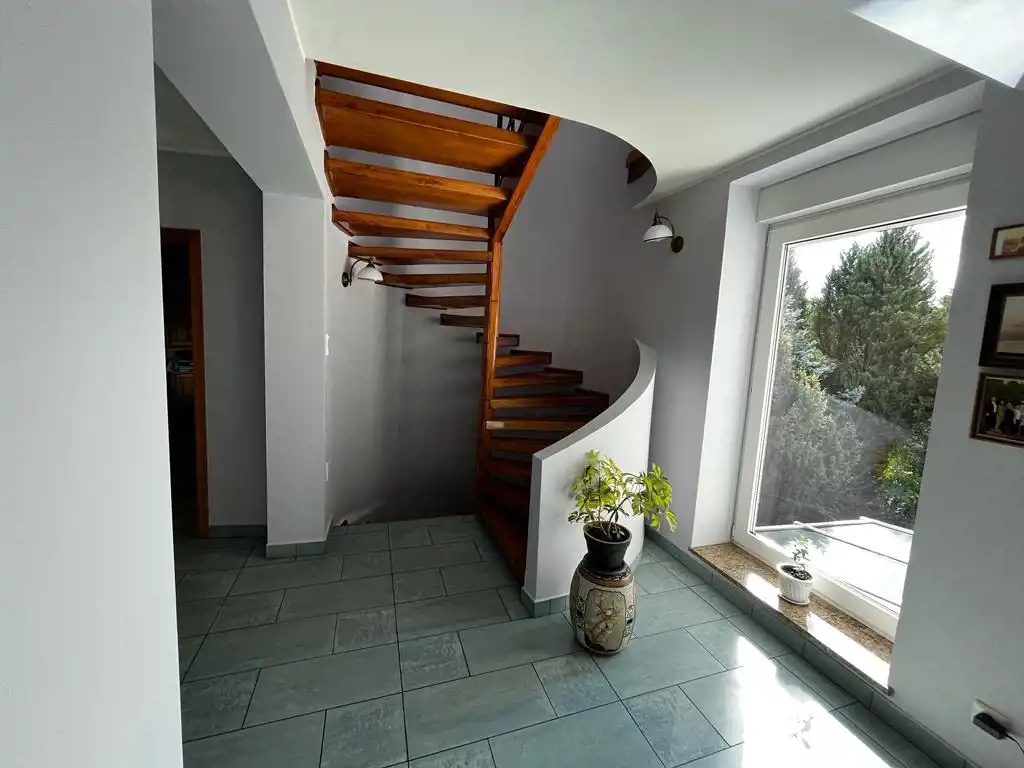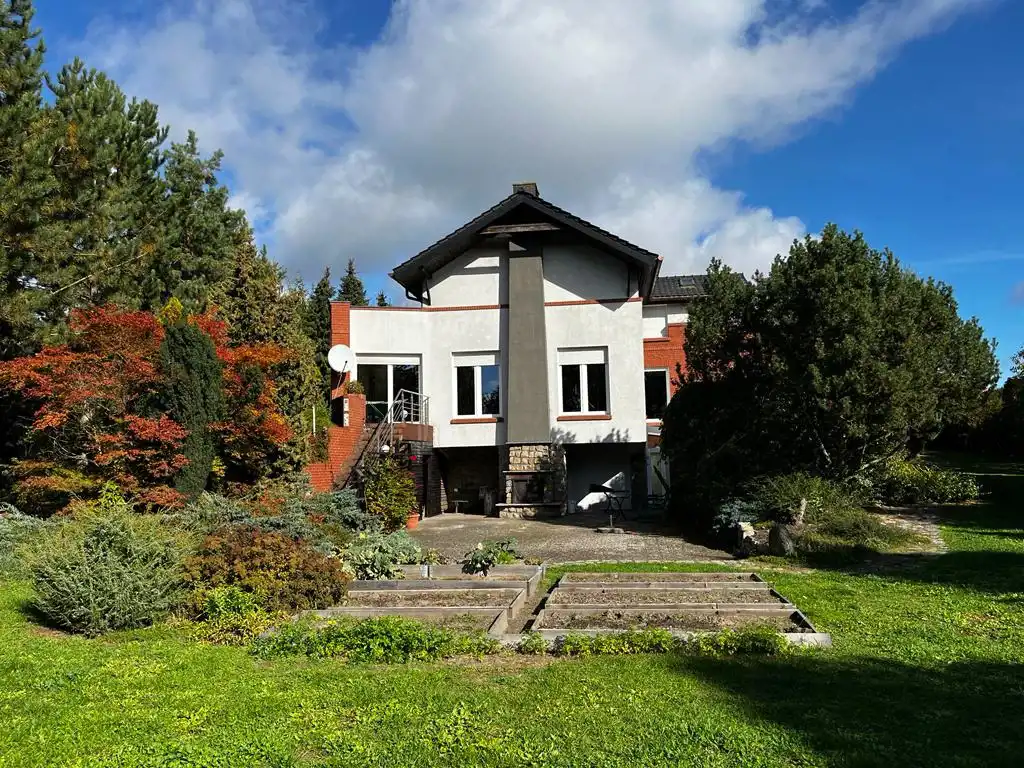 budynek mieszkalny jednorodzinny z garażem w bryle, jednokondygnacyjny z poddaszem mieszkalnym, częściowo podpiwniczony w zabudowie wolnostojącej, rok budowy 1999r., powierzchnia ok. 385 m2( w tym garaż p pow. ok. 49 m2). Budynek wykonany w technologii murowanej, pustak ceramiczny, ściany budynku częściowo obłożone cegłą klinkierową, okna z profili PCV z roletami zewnętrznymi. Nieruchomość ogrodzona, brama wjazdowa elektryczna, zdalnie sterowana. Garaż w bryle, dwustanowiskowy z bramą rolowaną elektrycznie. Ogrzewanie- pompa ciepła gruntowa na odwiertach, w salonie znajduje się kominek z rozprowadzeniem nadmuchowym- obłożony piaskowcem i marmurem. W budynku znajduje się też sauna, centralny odkurzacz , kominek zewnętrzny obłożony kamieniem.