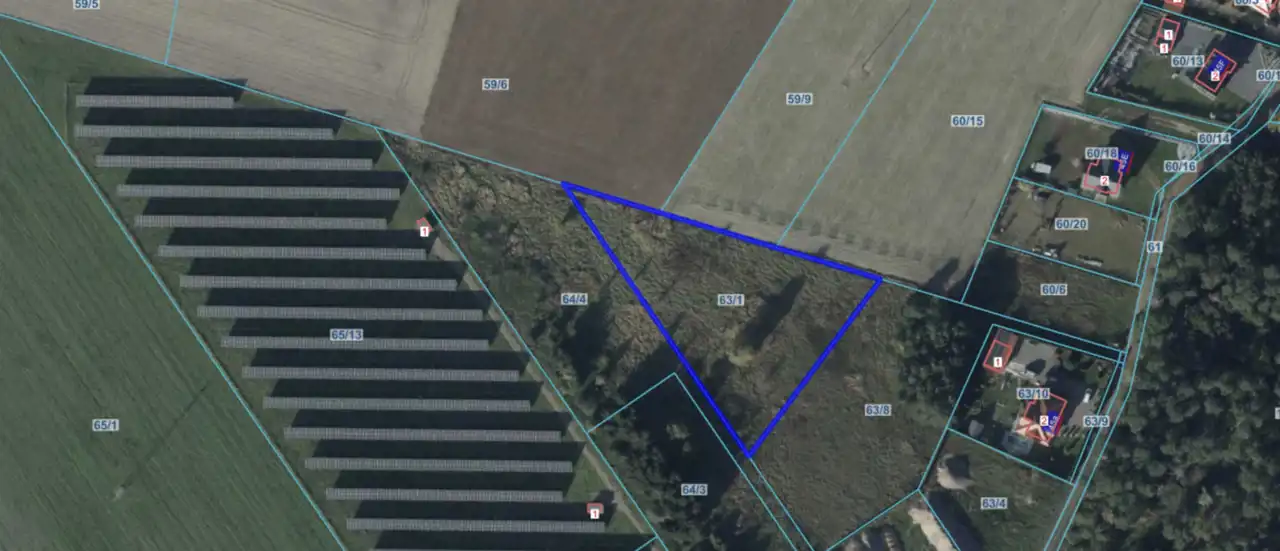 Działka w kształcie trójkąta o orientacyjnych wymiarach 117 m x 117 m x 78 m, co daje wiele możliwości zagospodarowania terenu. Teren jest niezabudowany, nieogrodzony, z bezpośrednim dostępem do drogi gruntowej publicznej.