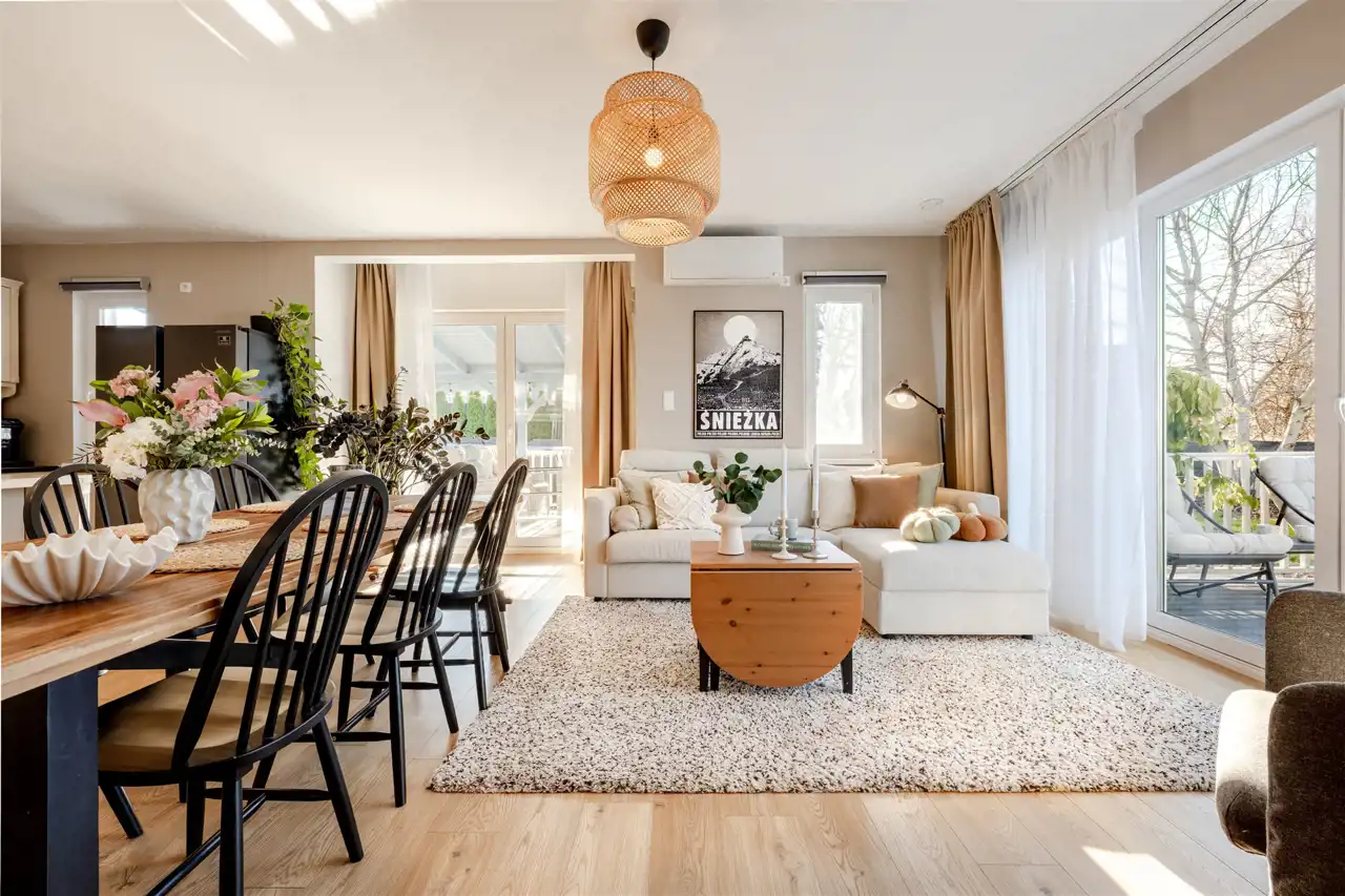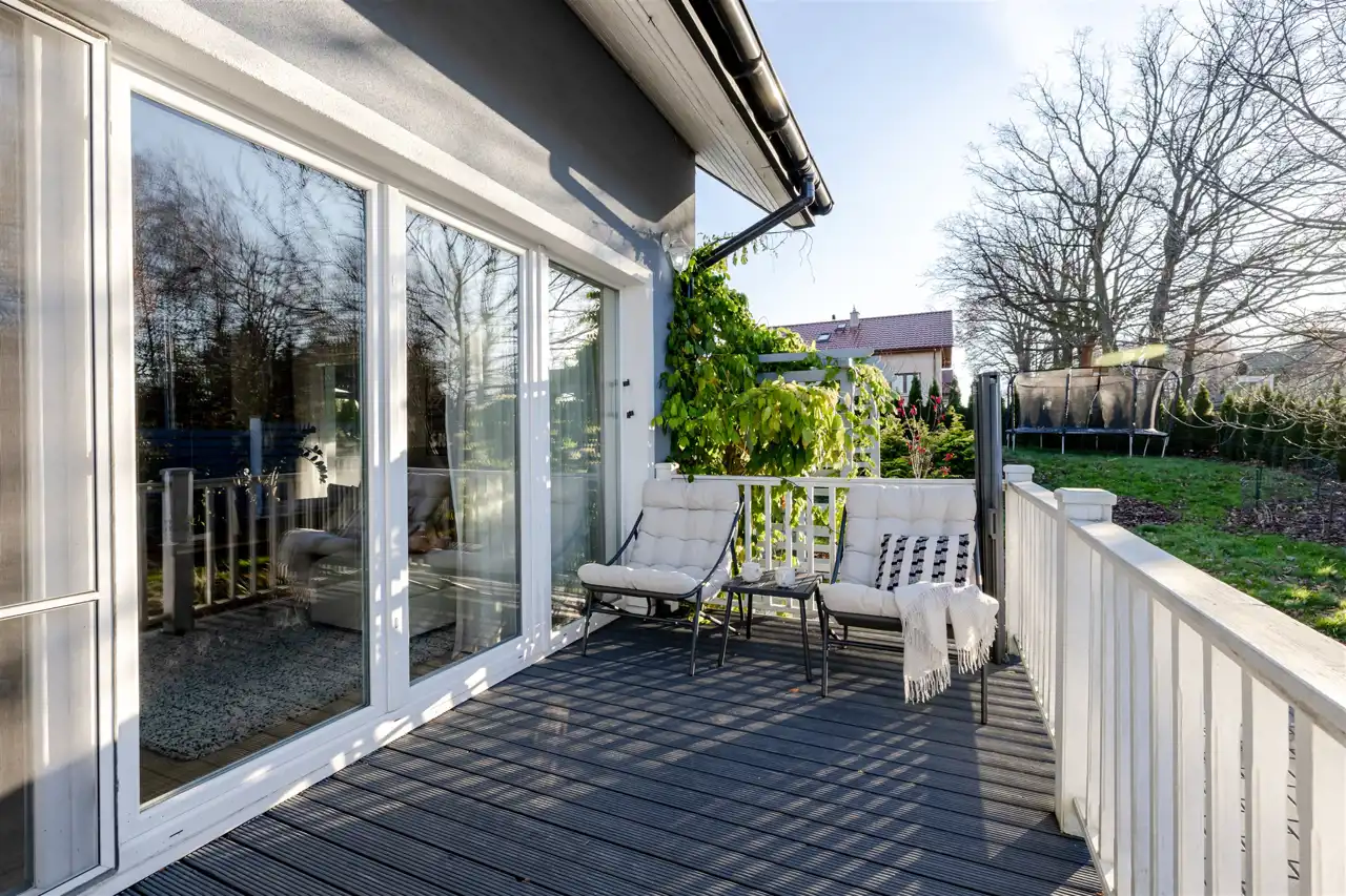 wyjście na dwa tarasy – większy zadaszony oraz drugi otwarty
