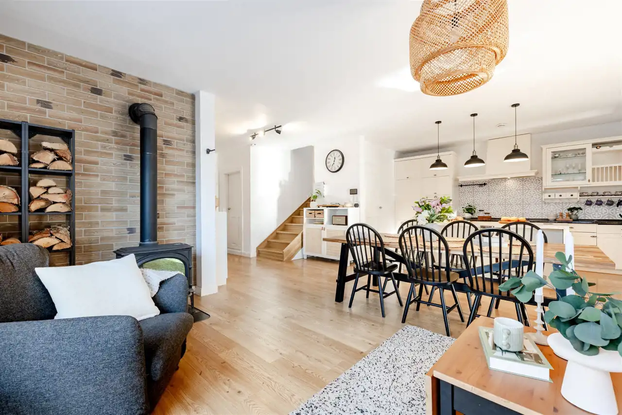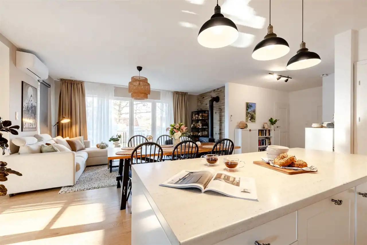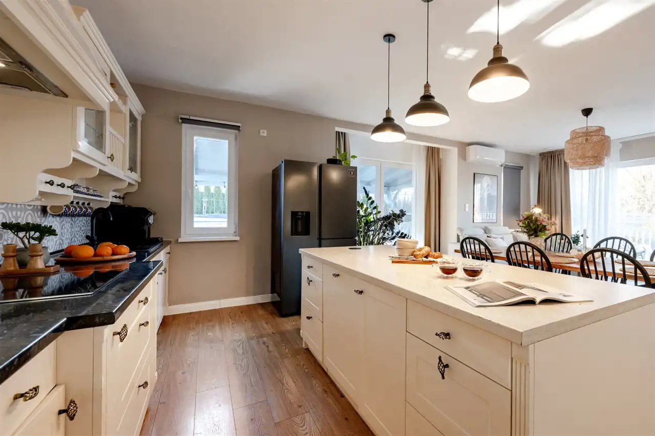 Dom jest nowoczesny, w pełni urządzony i gotowy do zamieszkania. Układ pomieszczeń jest praktyczny i przemyślany, a całość zapewnia komfortowe warunki dla rodziny. To oferta dla osób, które poszukują nieruchomości w spokojnej okolicy, z szybkim dojazdem do Wrocławia, z pełną infrastrukturą i dobrze zagospodarowaną działką.