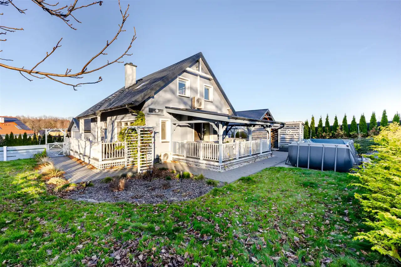 Działka ma powierzchnię 1133 m² i jest w pełni zagospodarowana. Na jej terenie znajduje się wolnostojący garaż o powierzchni 30 m2 na dwa samochody oraz podjazd, który pozwala zaparkować kolejne dwa auta. Teren jest ogrodzony i dobrze utrzymany. Duża część ogrodu daje możliwość dowolnego wykorzystania – można tu urządzić miejsce do odpoczynku, plac zabaw dla dzieci, ogródek lub niewielką przestrzeń rekreacyjną.