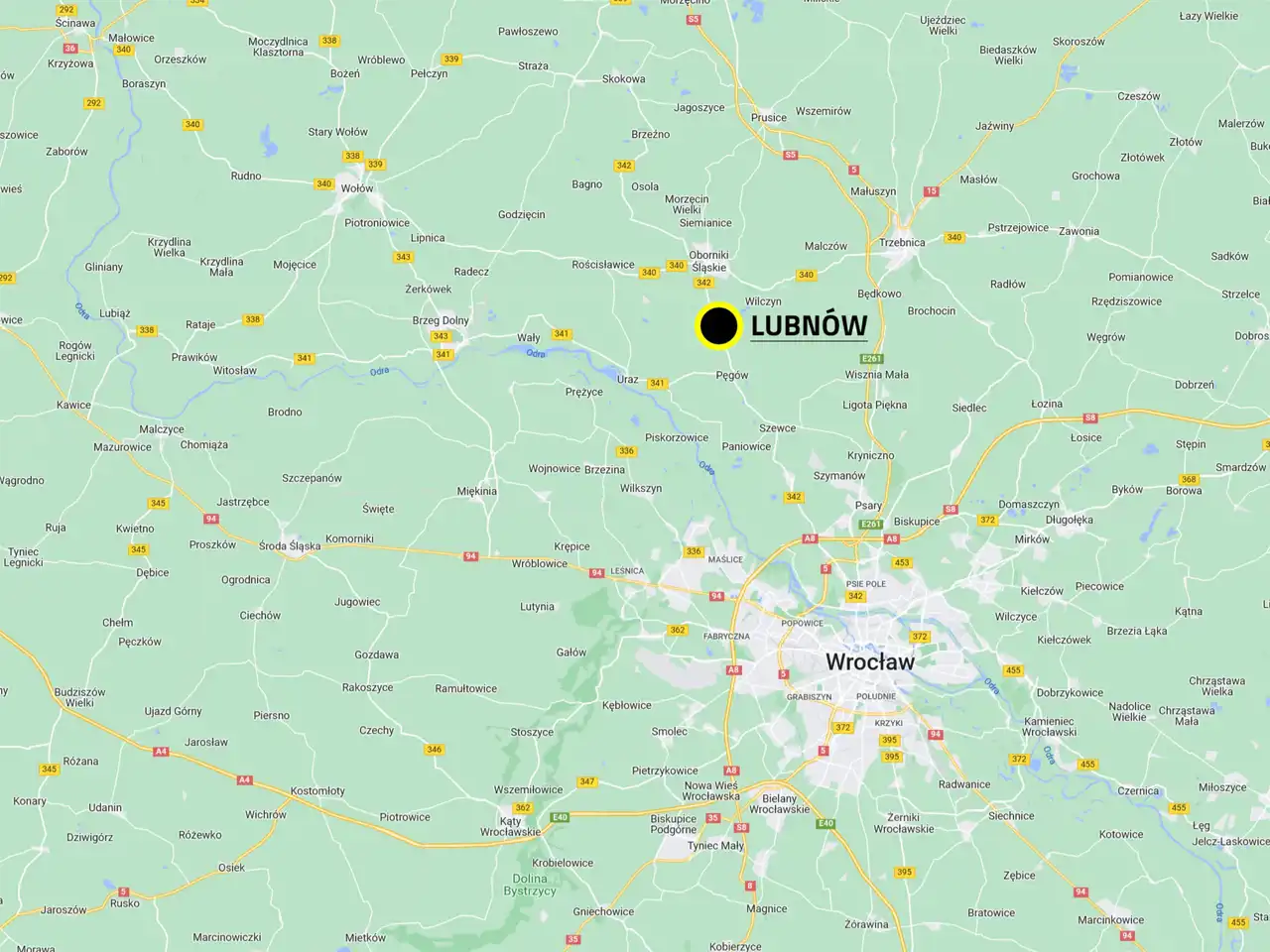 15 km do północnych granic Wrocławia oraz Trzebnicy