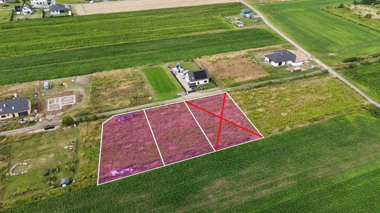 - Powierzchnia: 1000 m² każda z działek, możliwy zakup w pakiecie lub osobno