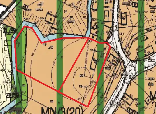 - Działka częściowo zagospodarowana, falista, nieregularny