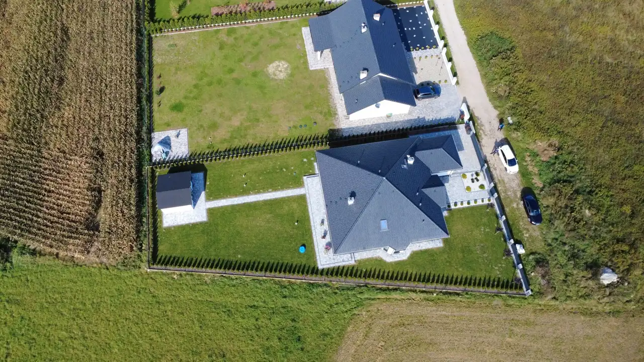 – działka o pow. 1000 m², starannie zagospodarowana – trawnik, nasadzenia tuj wzdłuż ogrodzenia