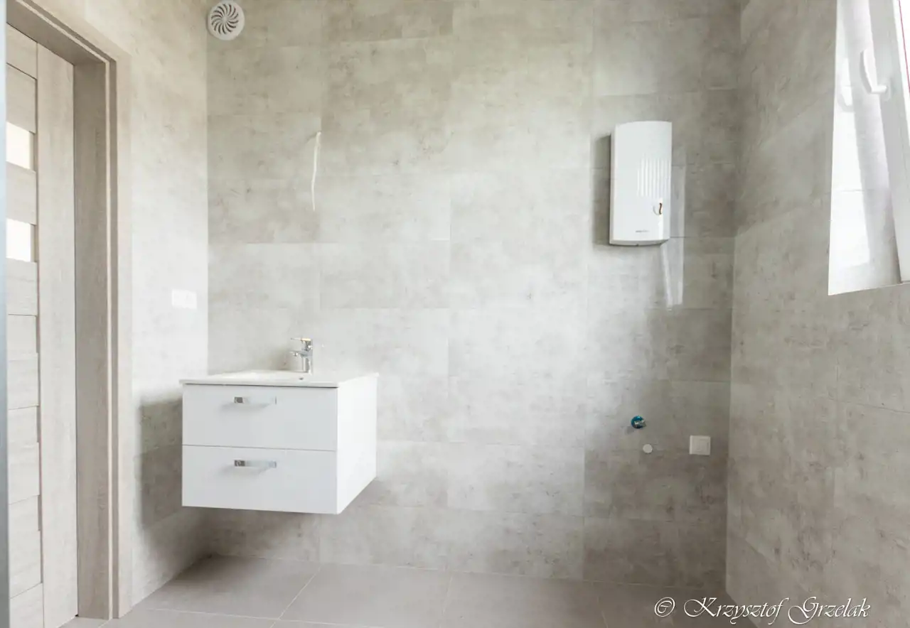 W domu została zaimplementowana została instalacja ogrzewania podłogowego - akumulacyjnego, co w połączeniu z dobrym ociepleniem gwarantuje w przyszłości bardzo niskie koszty utrzymania domu.