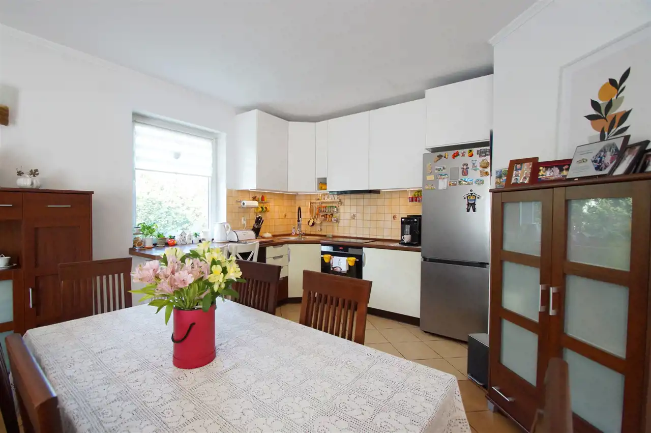 Dom jest bardzo zadbany, gotowy do zamieszkania, na bieżąco odświeżany. W ostatnim roku odmalowana elewacja, zainstalowano dodatkową wiatę w ogrodzie. Okna dwuszybowe, plastikowe. Meble kuchenne i sprzęt AGD (indukcja, chłodziarko- zamrażarka, piekarnik i okap) zostały wymienione w 2020roku.