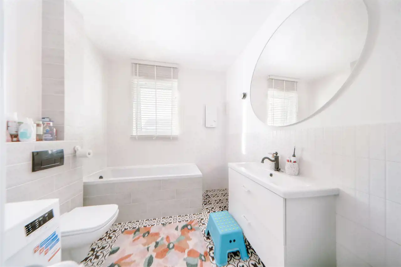 - łazienka z wanną i toaletą