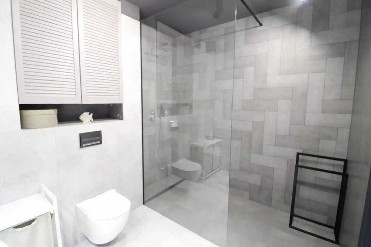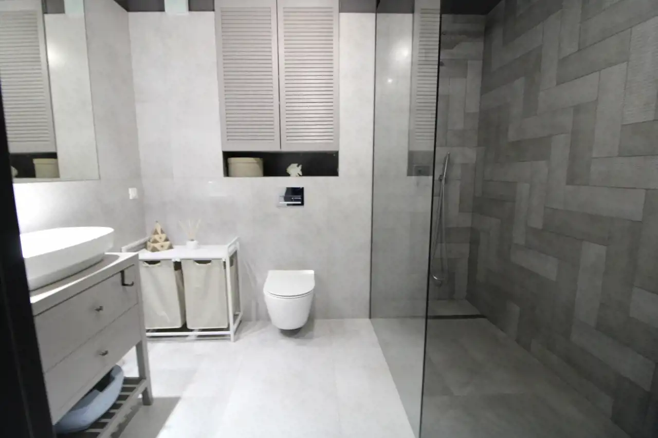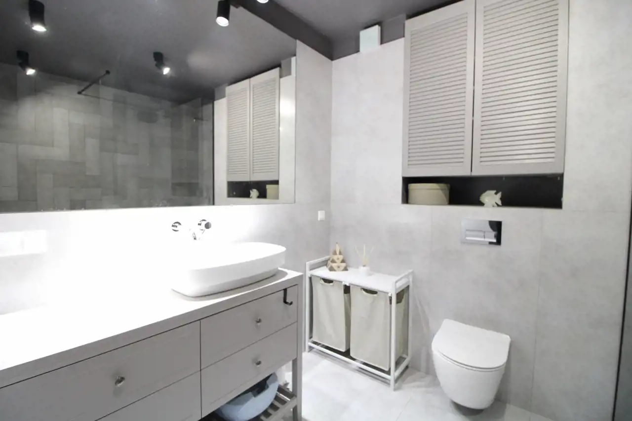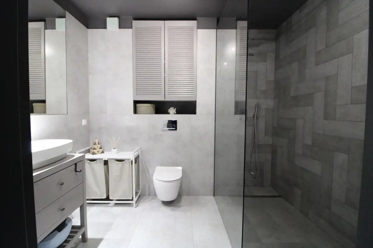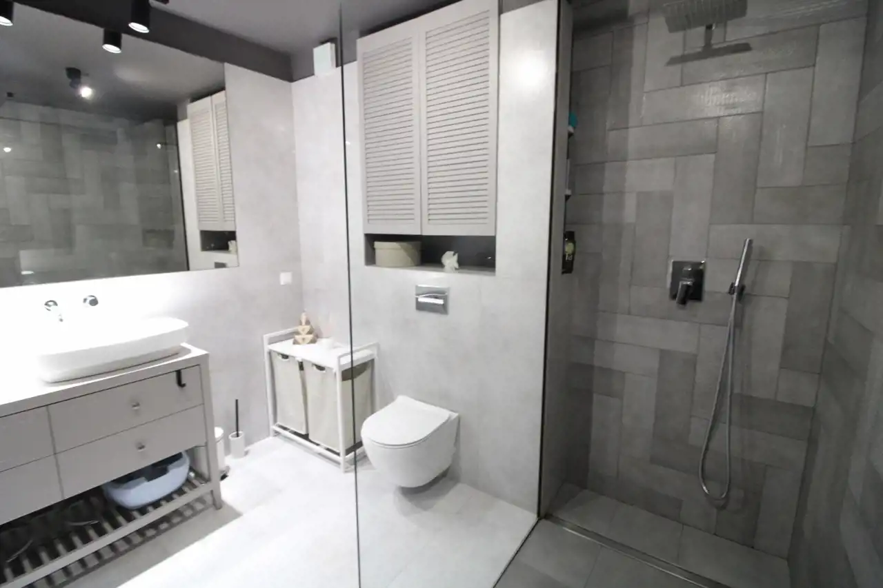 przestronna łazienka z prysznicem
