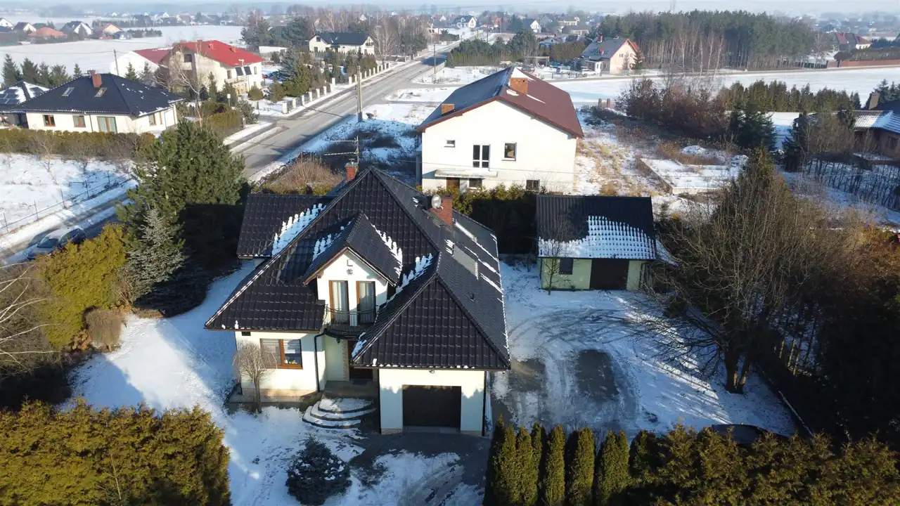 - Ekonomiczny i solidny dom: ogrzewanie piecem na węgiel groszek z podajnikiem, dach deskowany, dachówka ceramiczna, okna PCV