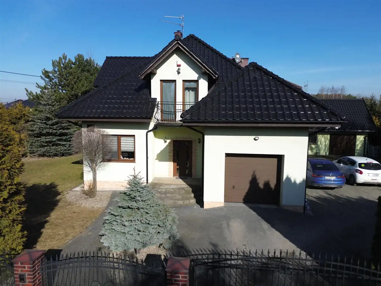 - 2 Garaże z automatyczną bramą wjazdową oraz dodatkowe miejsca parkingowe na podjeździe