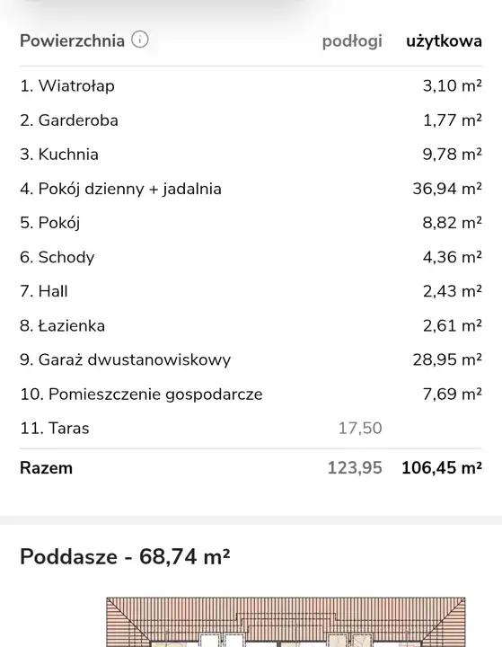 - salon z jadalnią 36,94m2 z wyjściem na taras 17,50m2
