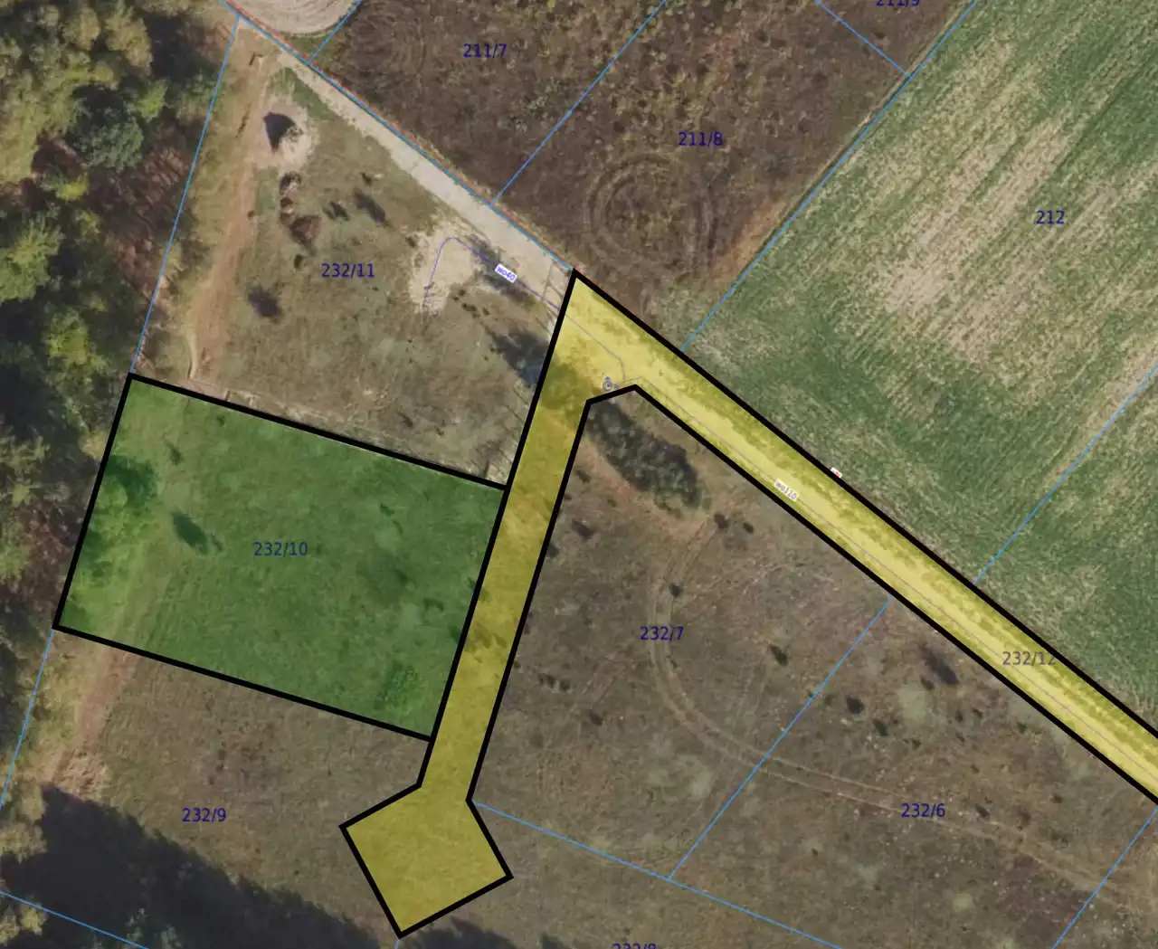 Nieruchomość o powierzchni 1350 m2 zlokalizowana przy lesie od strony południowo-zachodniej.