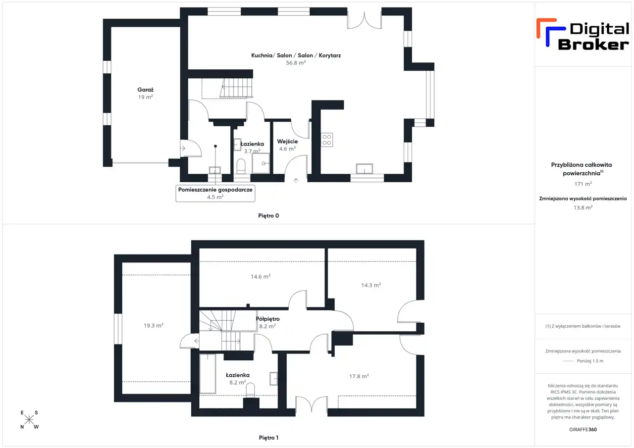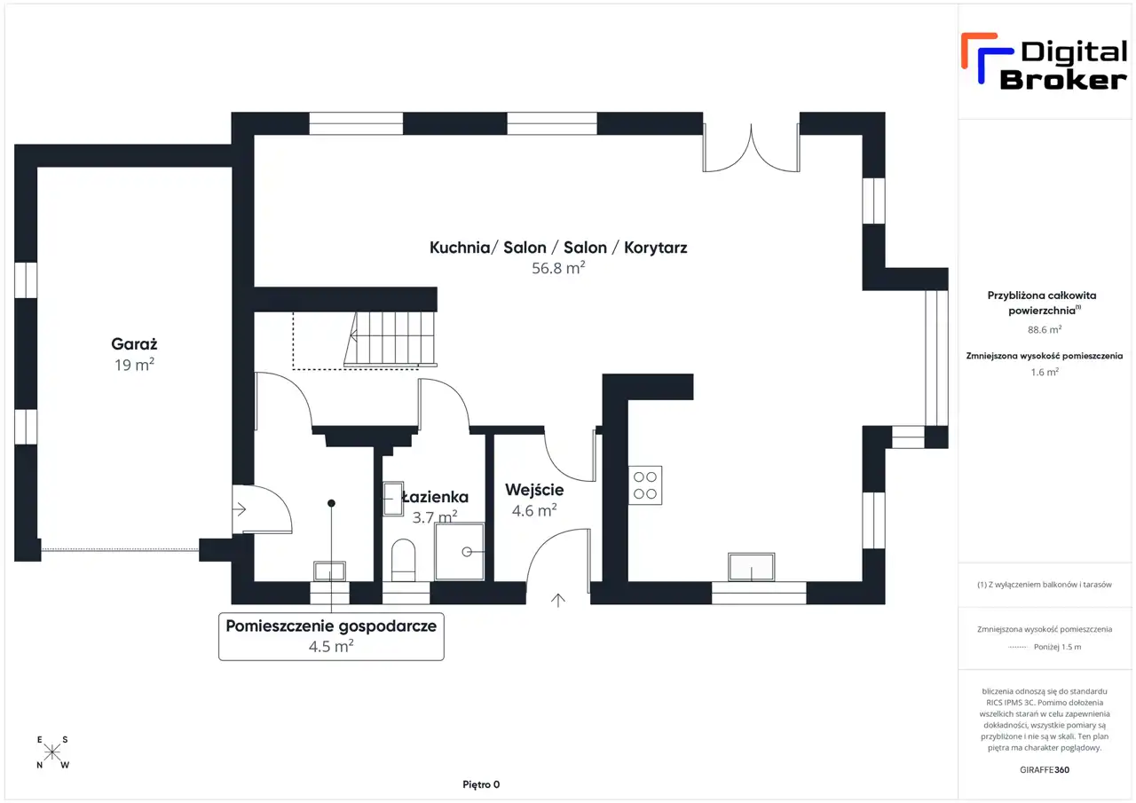 - pomieszczenie gospodarcze / kotłownia – 4,5 m²