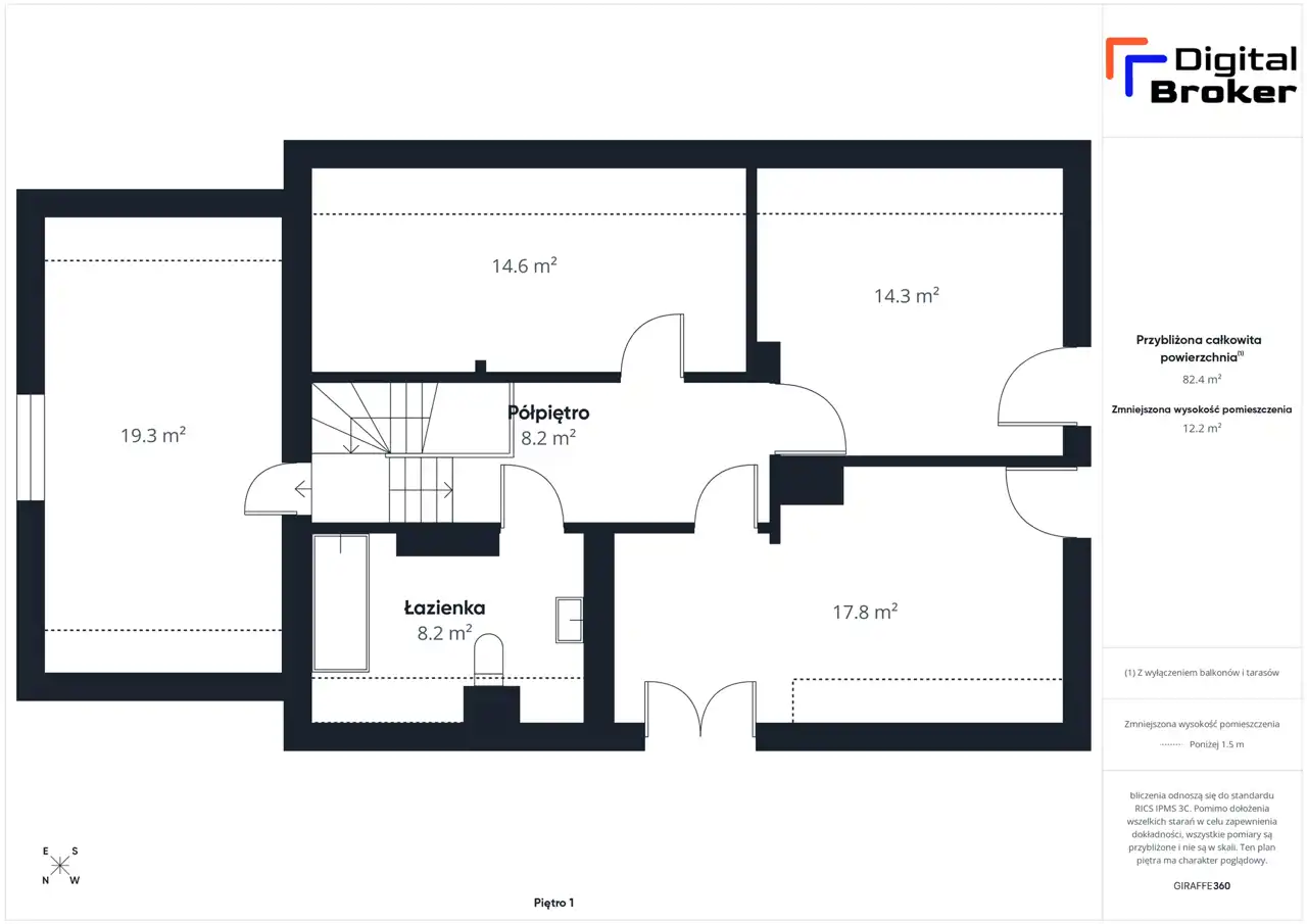 - funkcjonalny hall / komunikacja – 8,2 m²