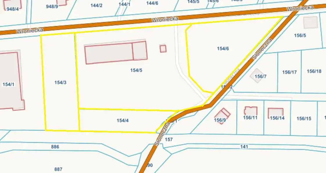 • w skład nieruchomości wchodzą działki grunty o numerach: 154/3, 154/4, 154/5 oraz 154/6, przy czym działka nr 154/5 jest częściowo zabudowana budynkami komercyjnymi o łącznej powierzchni 1,5126 ha,