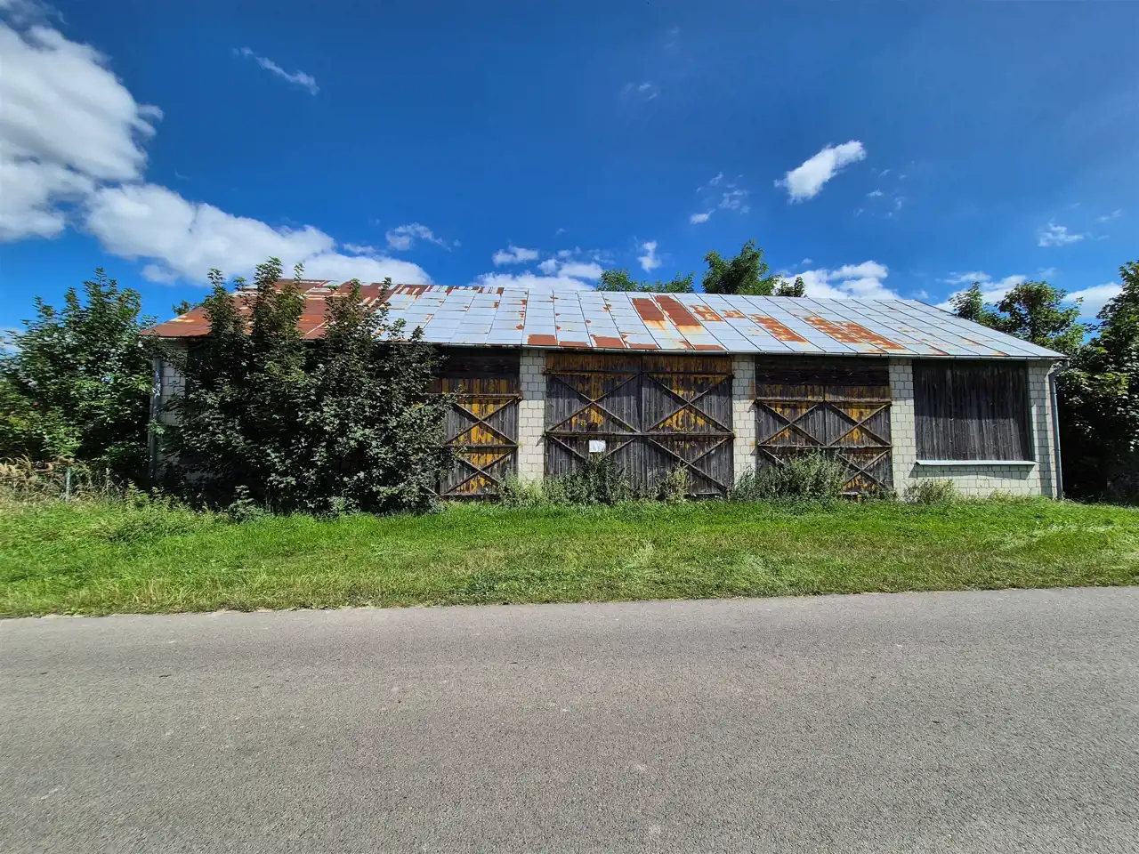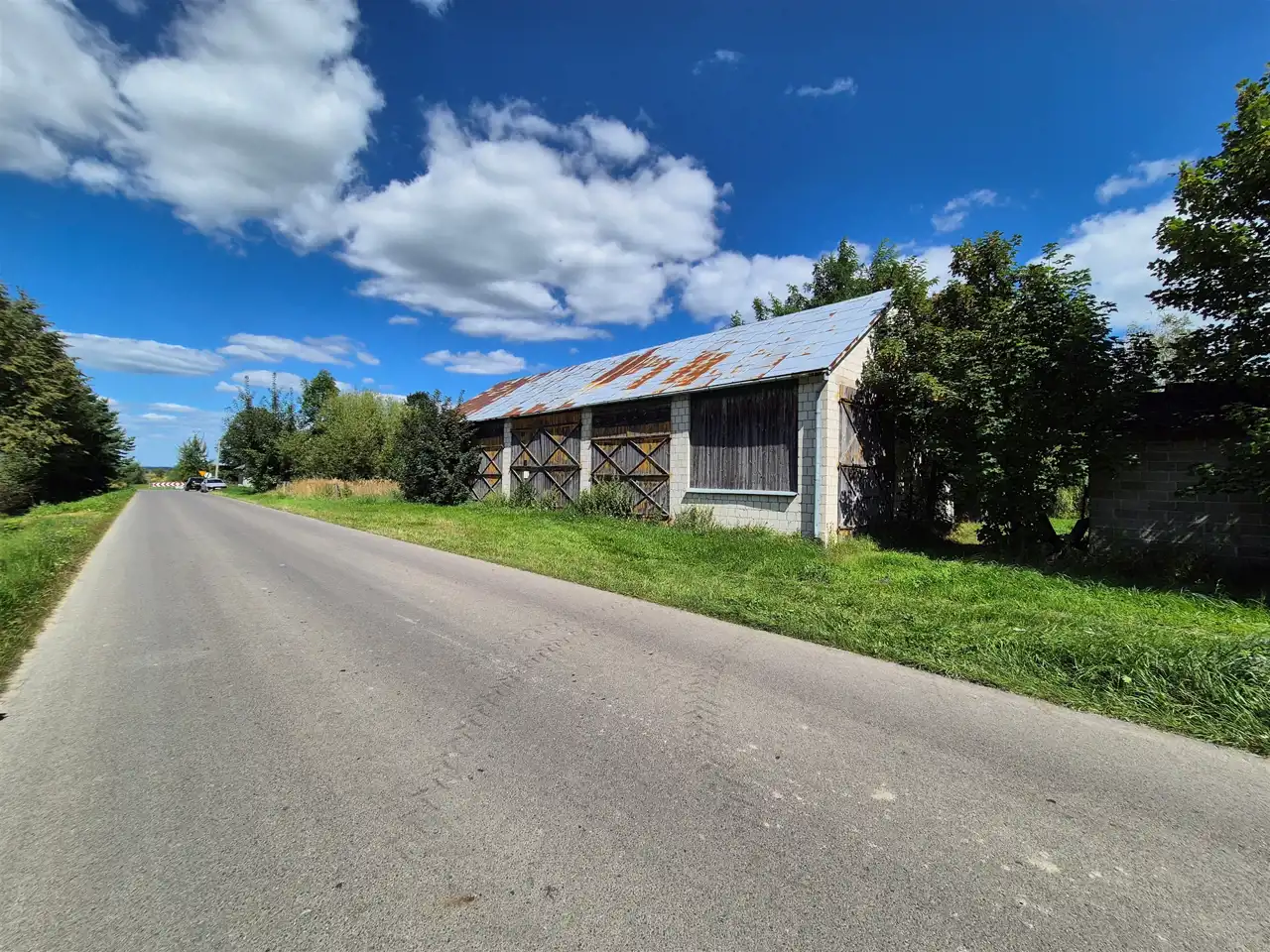 stodoła murowana kryta blachą.