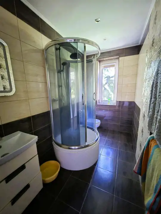 *I piętro o pow. 103 m2: 4 pokoje, kuchnia wyposażona w zabudowę meblową wraz ze sprzętem AGD: lodówka, kuchenka, piekarnik, mikrofalówka, łazienka z prysznicem oraz WC, korytarz, wiatrołap,- wysokość pomieszczeń – 2,53 m,