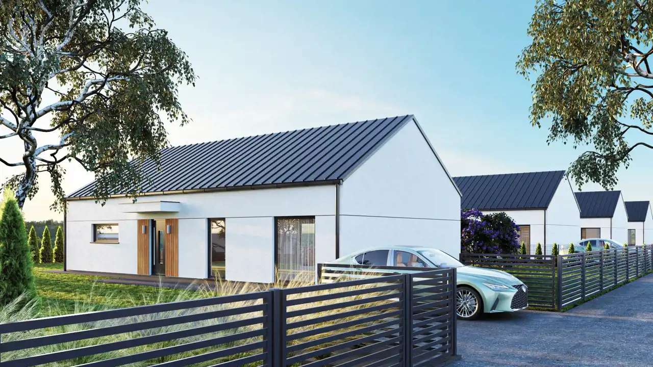 Oferta przedstawia domy parterowe o pow. 100,80 m2. Budynki charakteryzują się klasyczną bryłą i bardzo funkcjonalnym wnętrzem. Domy oddawane będą w stanie deweloperskim.