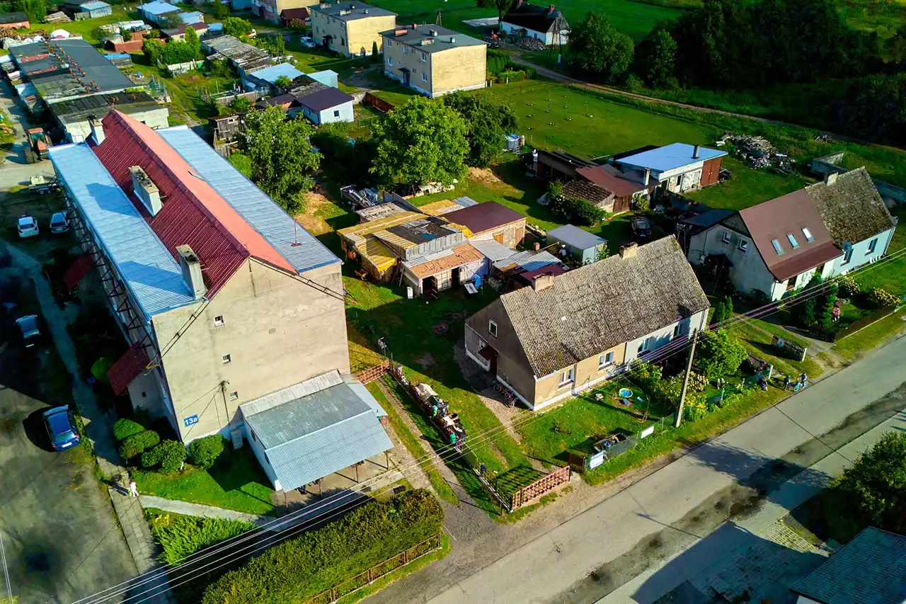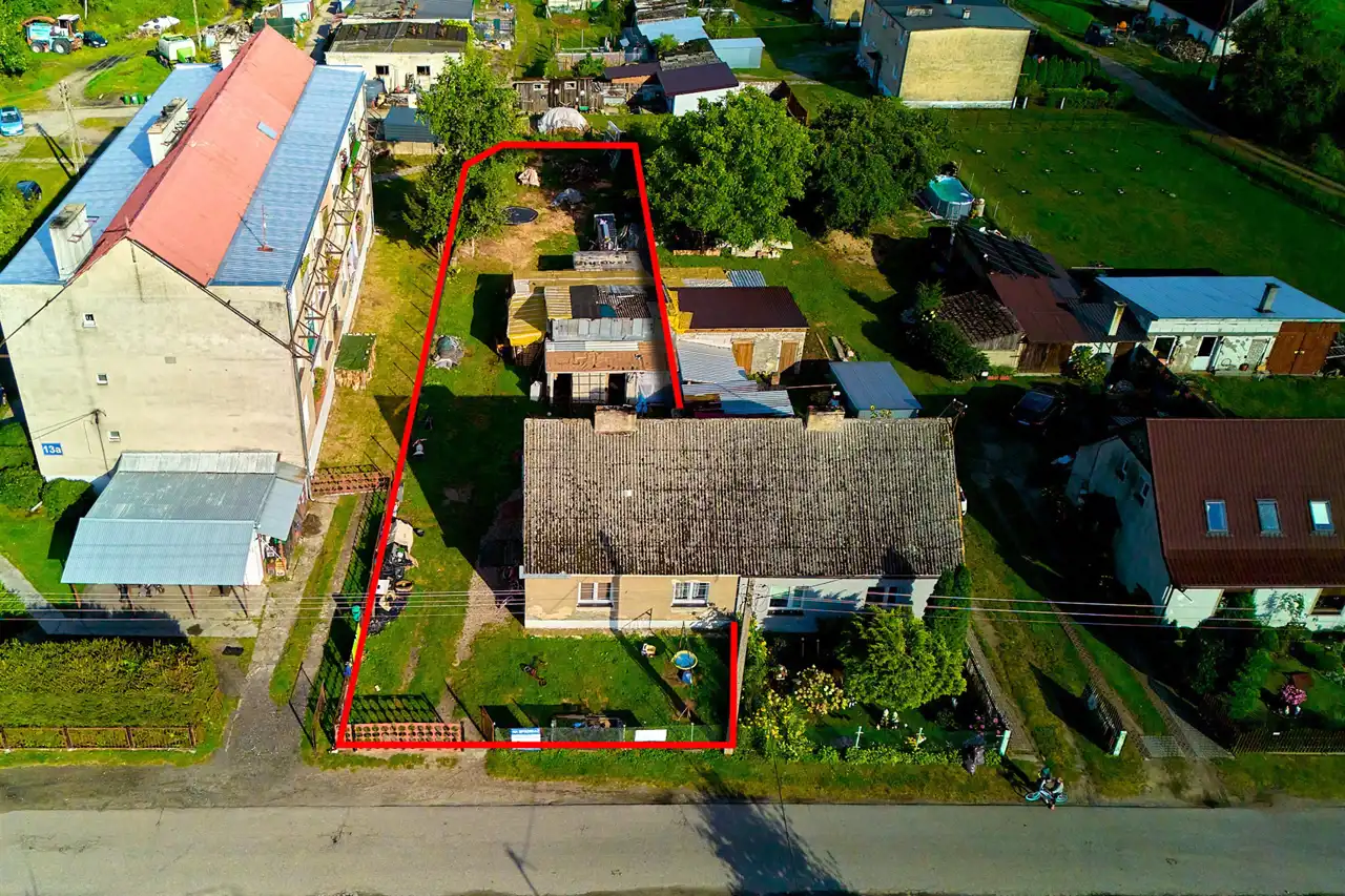 Nieruchomość położona nieco bardziej na obrzeżach miejscowości, idealnie nadaje się dla osób poszukujących cichej i ustronnej lokalizacji.