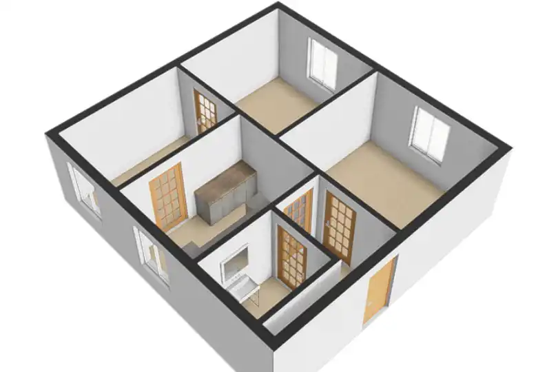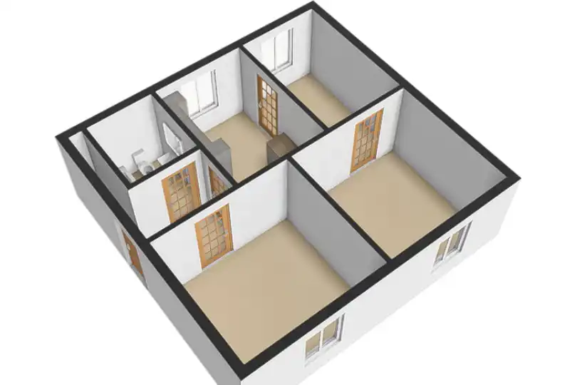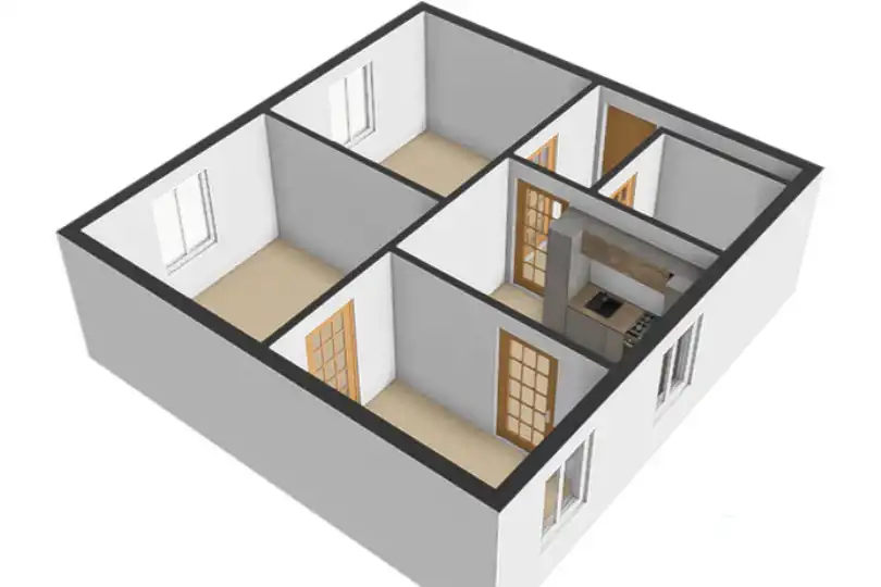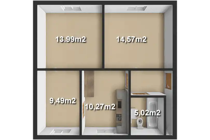 W część mieszkalna domu, znajdziemy 3 pokoje o 14,57m2 i 13,99m2 oraz 9,49m2, kuchnia o powierzchni 10,27m2, łazienka wraz z WC o powierzchni 5,02m2 oraz korytarz.