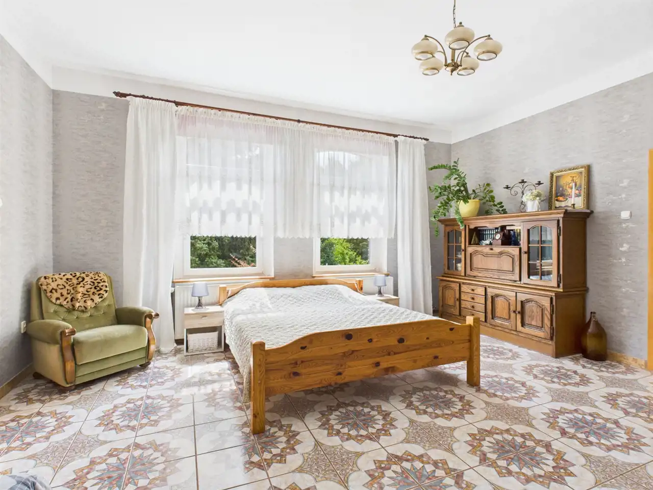 Dom jednorodzinny wolnostojący o powierzchni użytkowej 145,98 m², solidnie zbudowany i modernizowany, gotowy do zamieszkania.
