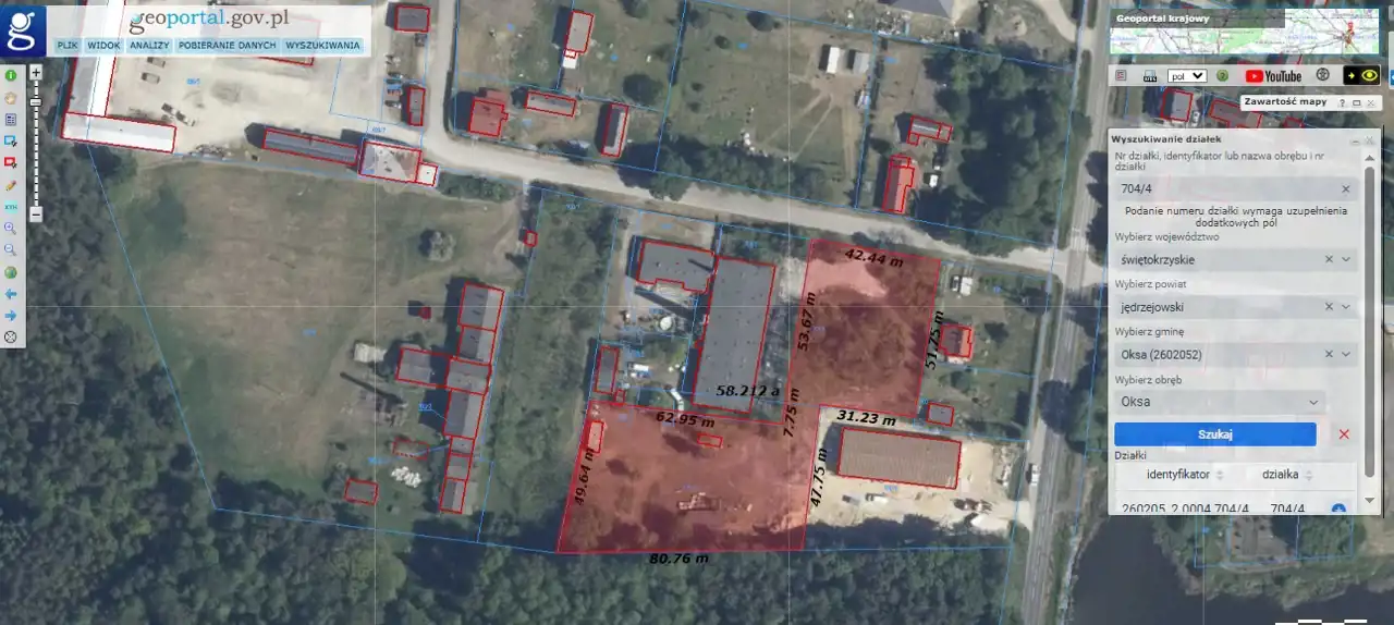 For sale a land property consisting of 2 plots with a total area of 5,793 m2, located in Oksa, near Jędrzejów.