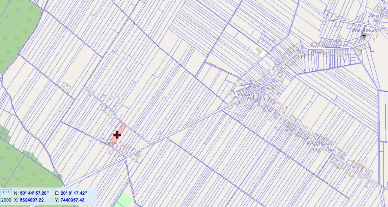 For sale: a plot of land with an area of 8,200 m², located in Węgleszyn, Oksa municipality.