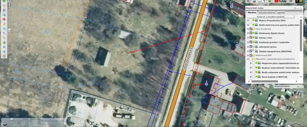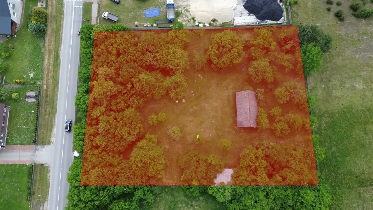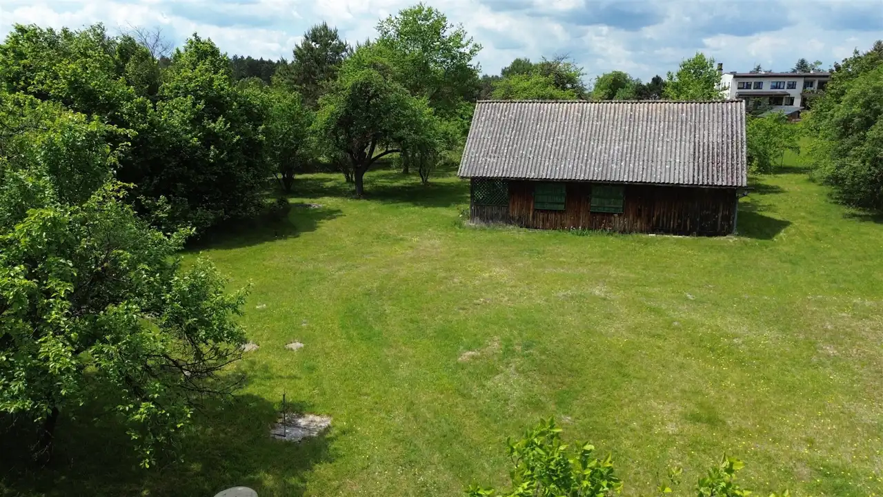 The plot is situated in the first line of development along Jędrzejowska Street. It is surrounded by developed plots. The land is flat, rectangular in shape, and fenced. There is an outbuilding on the plot currently serving as a summer house. The front part of the property is covered with trees and shrubs.