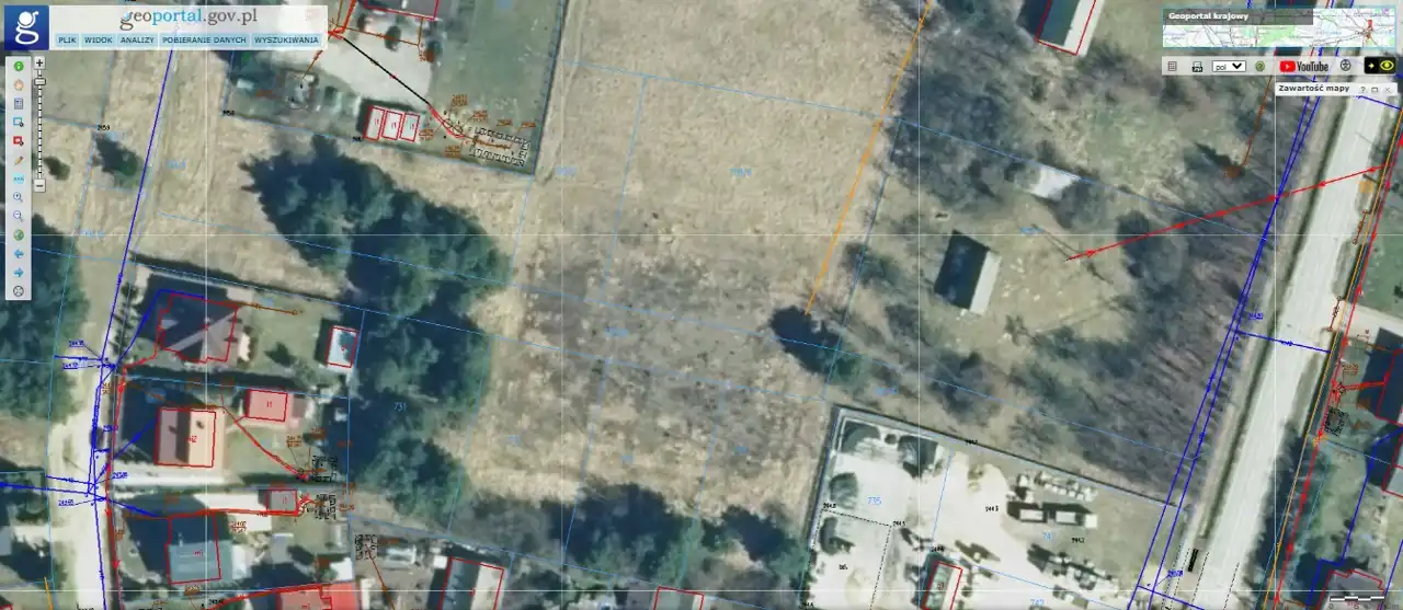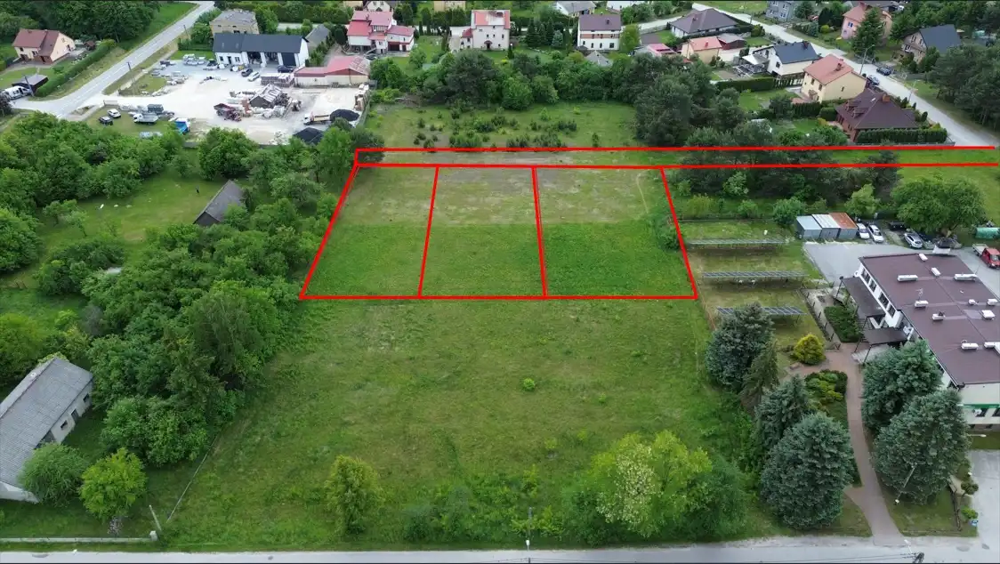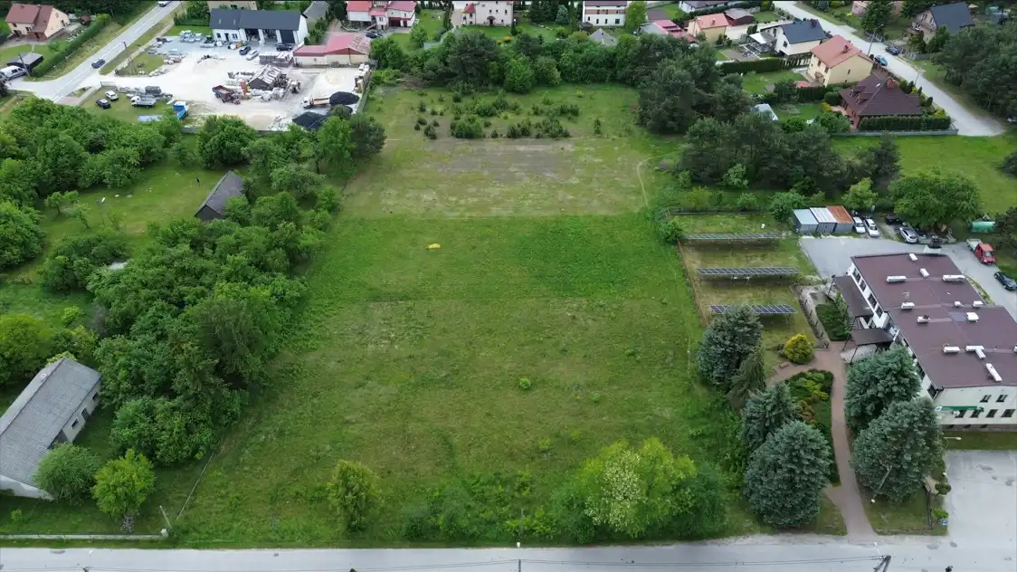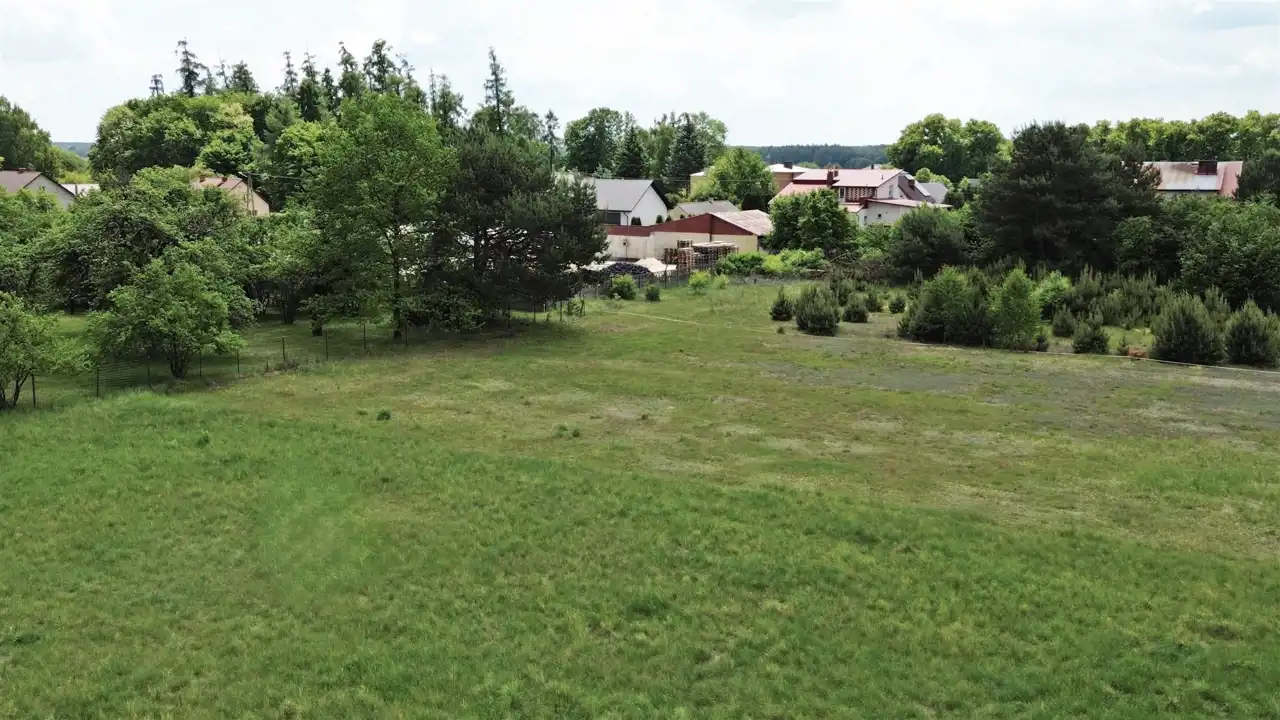 The property is situated in the fourth line from the main road. Neighbouring plots are developed. The plot is flat, rectangular in shape, fenced on one side. Access via the municipal road (Okrężna Street) and then approx. 110 m by an internal road.