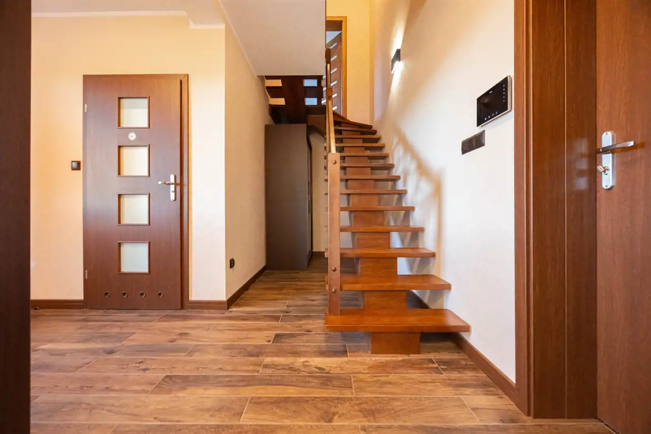 - dębowe schody z ażurową balustradą – solidność i styl.