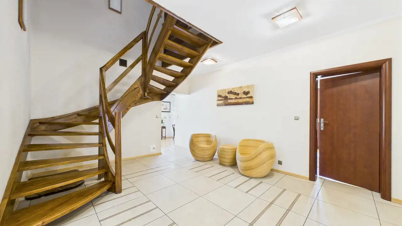 Naturalne podłogi, wysokiej klasy stolarka okienna, drzwiowa i schody