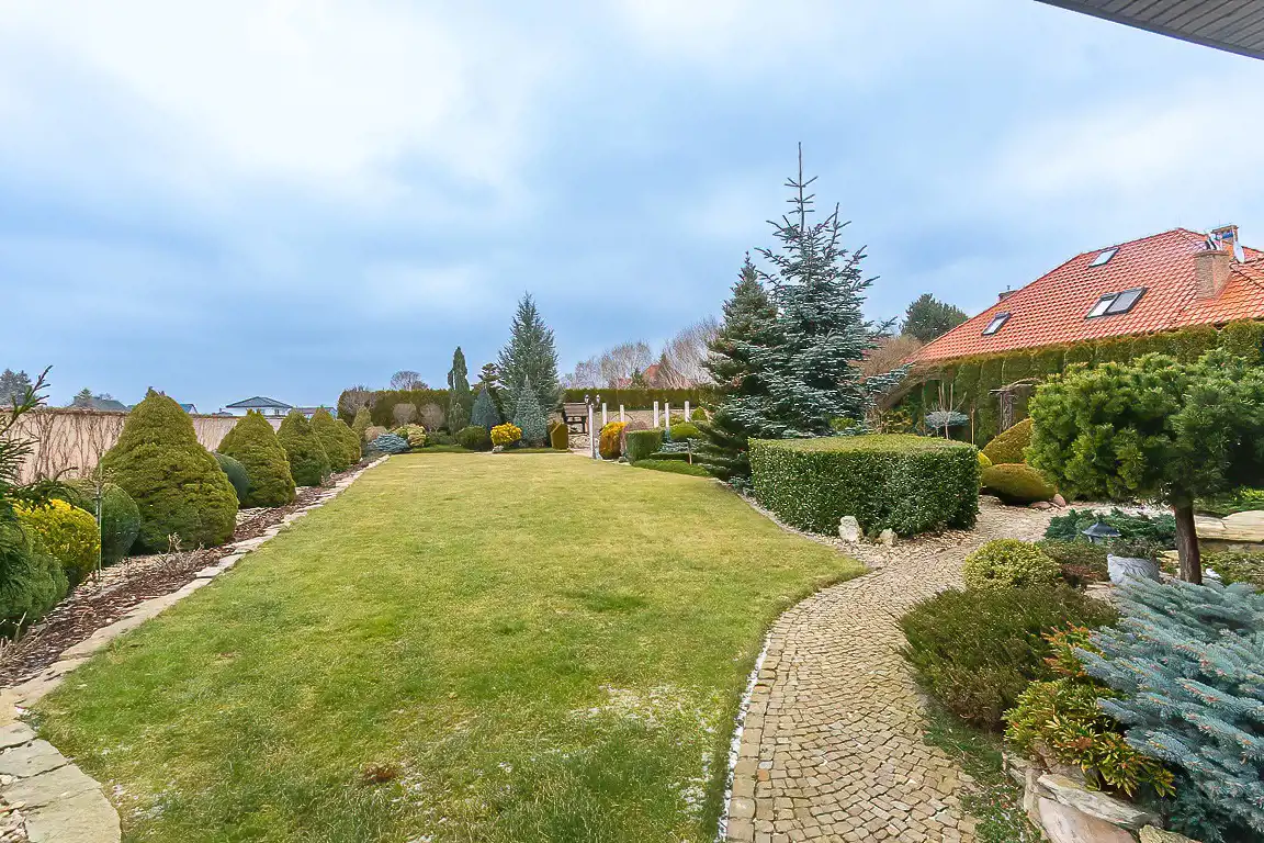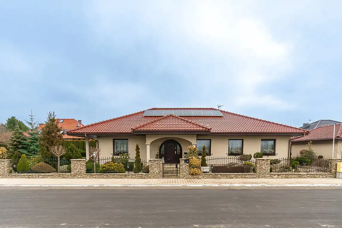 Dom w zabudowie parterowej o pow. 178 m2 z garażem wolnostojącym; na zgłoszeniu dodatkowo został dobudowany ogród zimowy, oraz pomieszczenie gospodarcze.