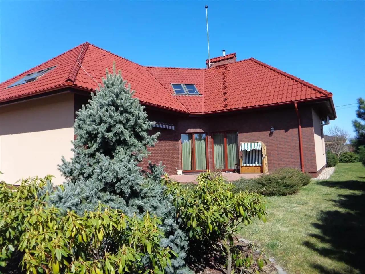 Budynek główny o powierzchni 300m2 z 2008 roku wybudowany z siporeksu + ocieplenie według indywidualnego projektu. Okna drewniane „Urzędowski” , dach wielospadowy kryty dachówka ceramiczną „Roben”, garaż na dwa samochody w bryle budynku.