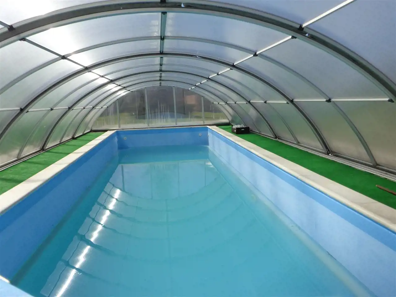 Pomiędzy budynkami usytuowany jest basen kąpielowy z podgrzewaną wodą . Wymiary basenu 10m x 5m , głębokość 150 cm.