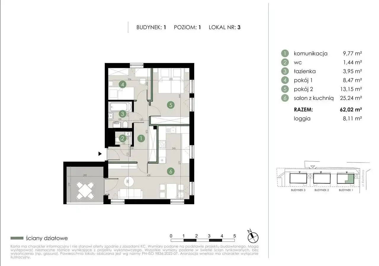 - Charakterystyka mieszkania 62.02 m2, 3 pokoje